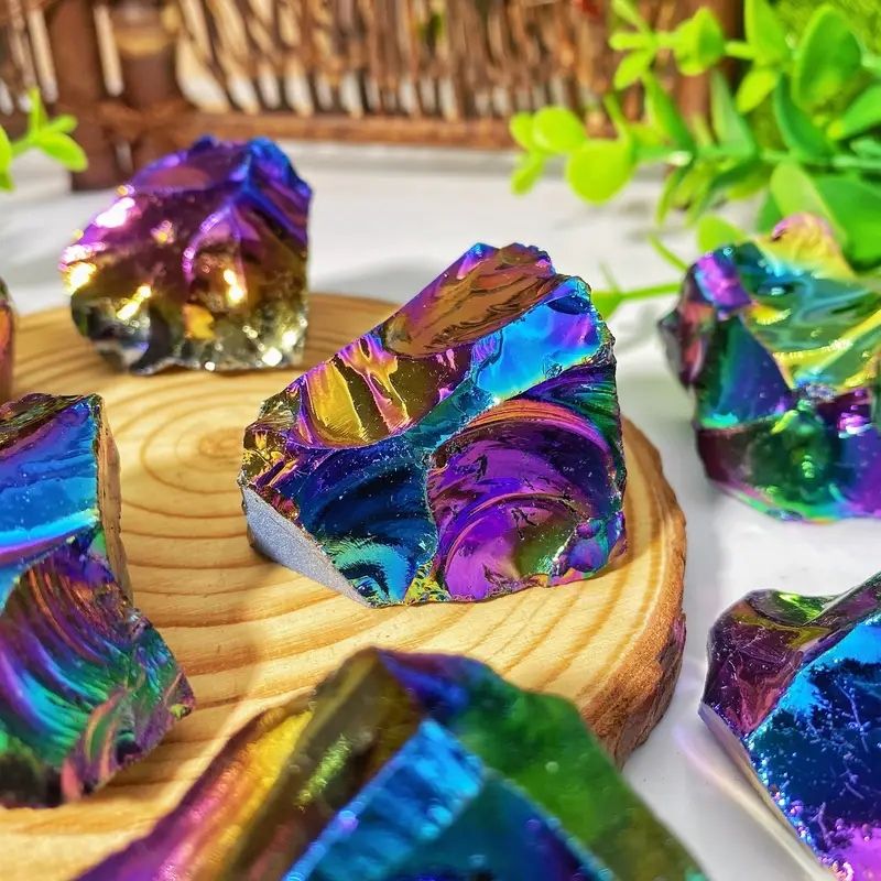 1pc High Quality Aura Black Obsidian Crystal Raw Stones Natural Healing Stones Electroplated Colorful for Home Decoration