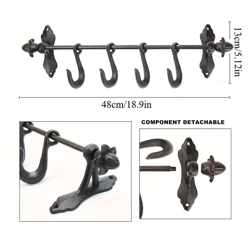1 Pezzo Gancio da Parete in Ghisa Robusta con 4 Ganci Utilitari Grandi Rimovibili per Casa, Cucina, Giardino, Garage, Bagno