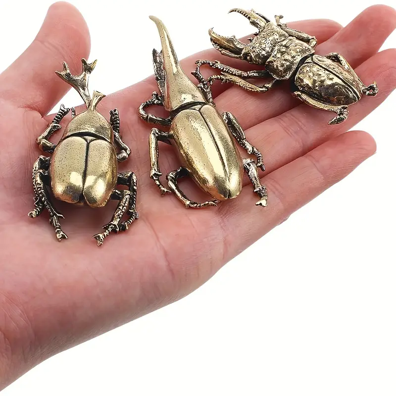 1pc Vintage Brass Beetle Sculptures, Metal Insect Figurines, Miniature Long-Horned Beetles for Desktop Decor
