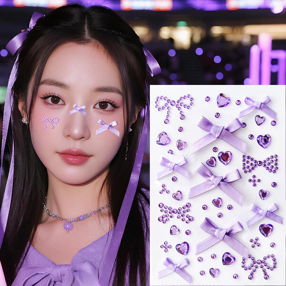 1 foglio di nastro rosa fiocco + cuore adesivi con strass in seta rossa Kawaii con fiocco e fiocco adesivi per gemme per decorazioni per bambini/ragazza