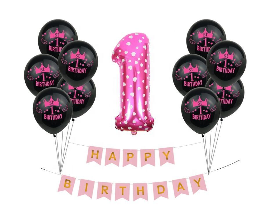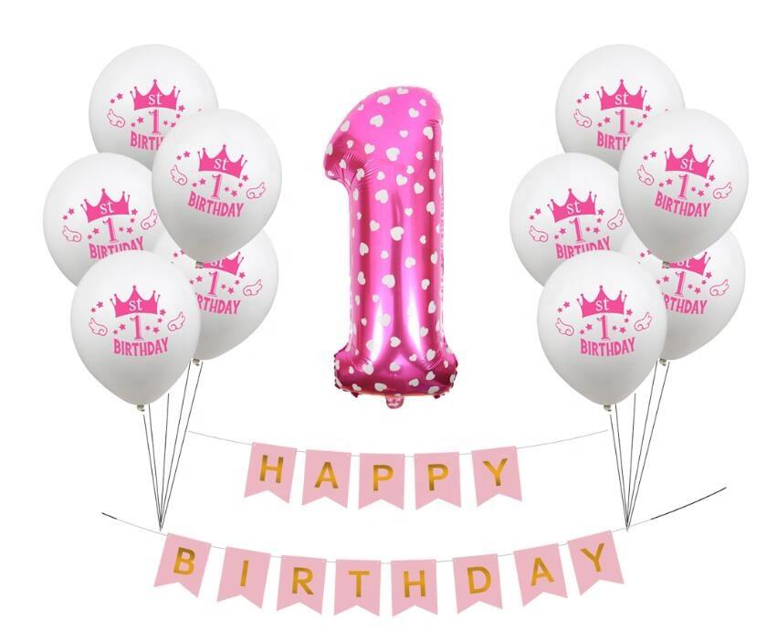Kit di palloncini di 1 ° anno decorazioni per feste di buon compleanno rosa blu palloncino a elio bandiera Banner forniture per decorazioni per Baby Shower