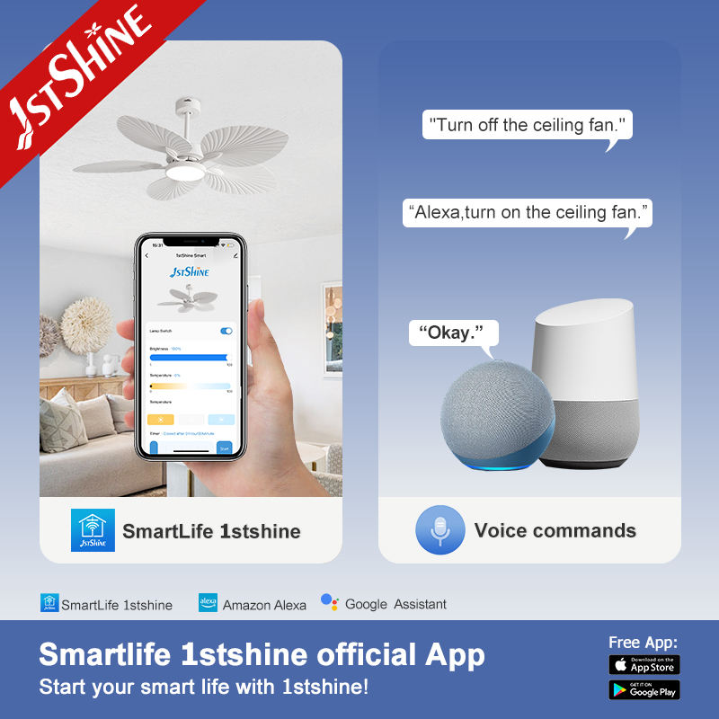 Ventilatore da soffitto tropicale bianco da 52 pollici 1stshine con pale leggere con motore a corrente continua a risparmio energetico per soggiorno