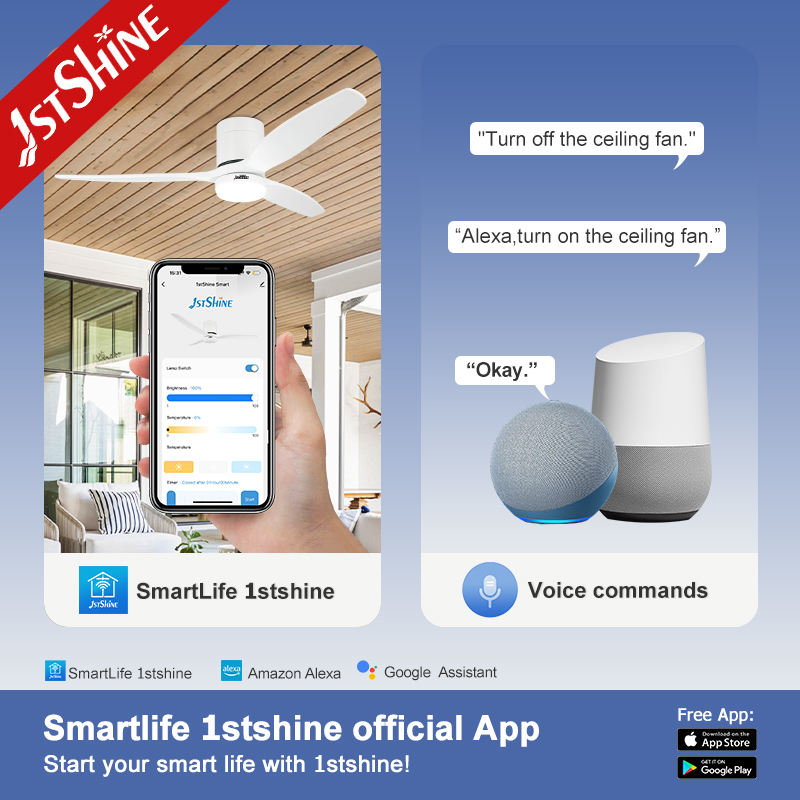 1stshine LED ventilatore da soffitto moda bianco lama in legno telecomando 6 velocità a filo montato ventilatore da soffitto con luce a LED