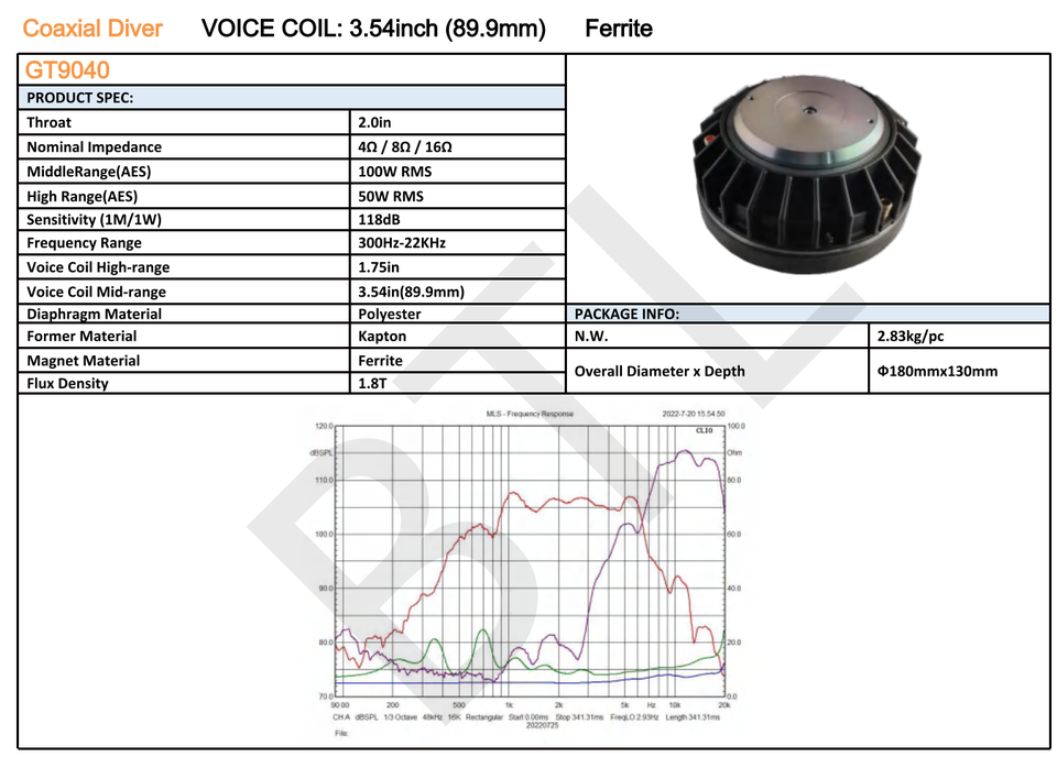 Driver da 2.0 pollici (confrontabile con BMS4590) 8/16Ω 118dB 300-22KHz Bolt-on Pro per PA, Concerti, Chiese, Teatri, Live House GT9040