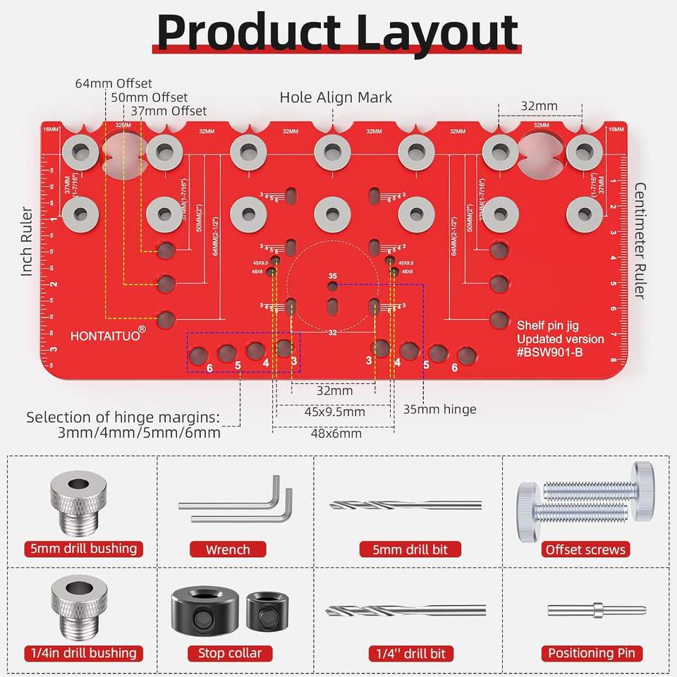 2 1/4 pollici 5 mm ripiano Pin Drill funzione auto-clampaggio armadietto Hardware Jig strumento da giardino utensili a mano con morsetto a cerniera