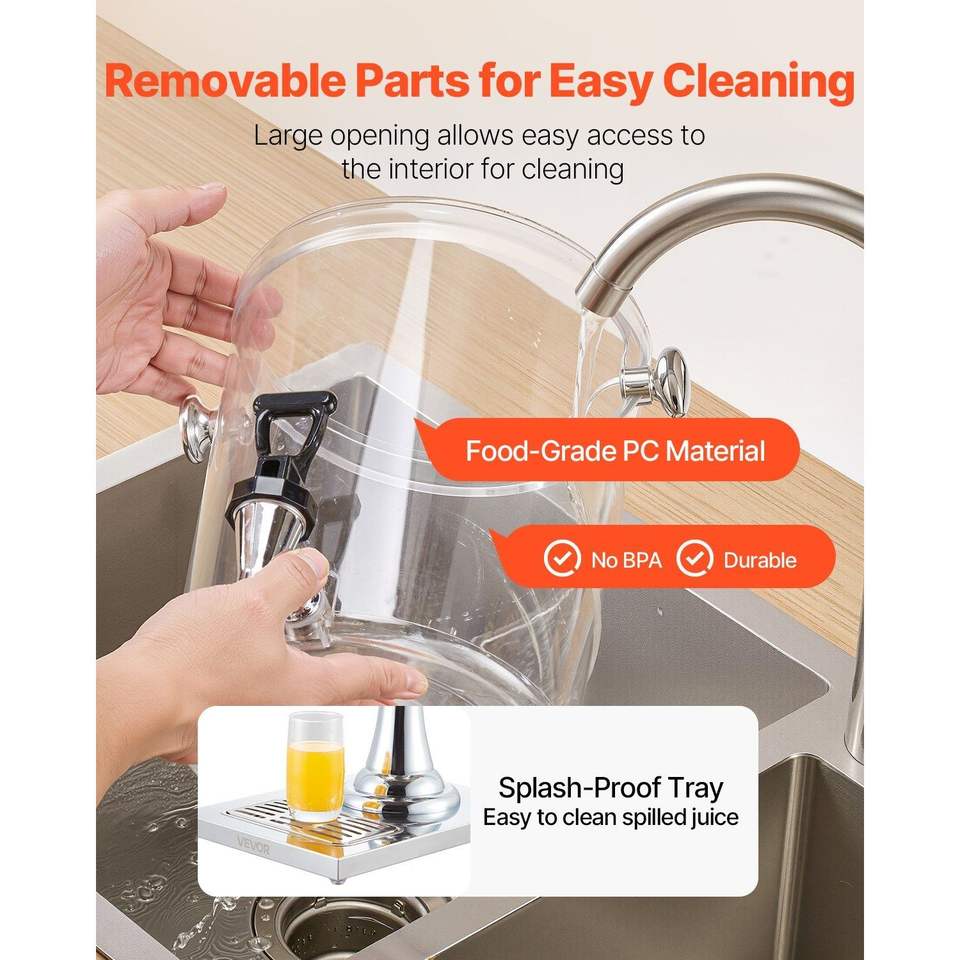 2.1 Gallon Stainless Steel and Plastic Beverage Dispenser with Spigot Ice Chamber for Parties and Juice Dispensing