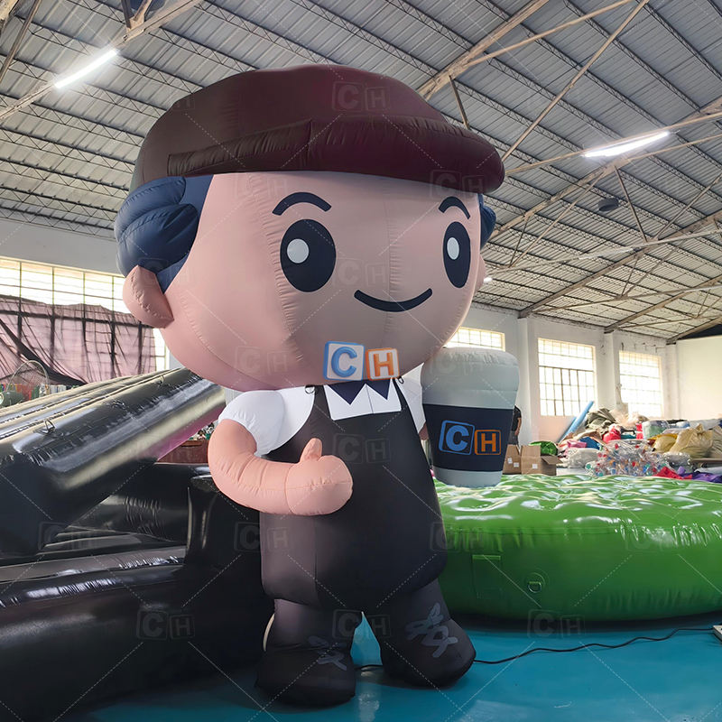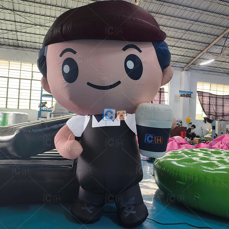 Gonfiabile Gigante a Forma di Uomo da 2,1 m di Altezza, Decorazione Soffiata ad Aria, Modello Mascotte Gonfiabile a Cartone Animato da 6,8 piedi per Negozi di Caffè