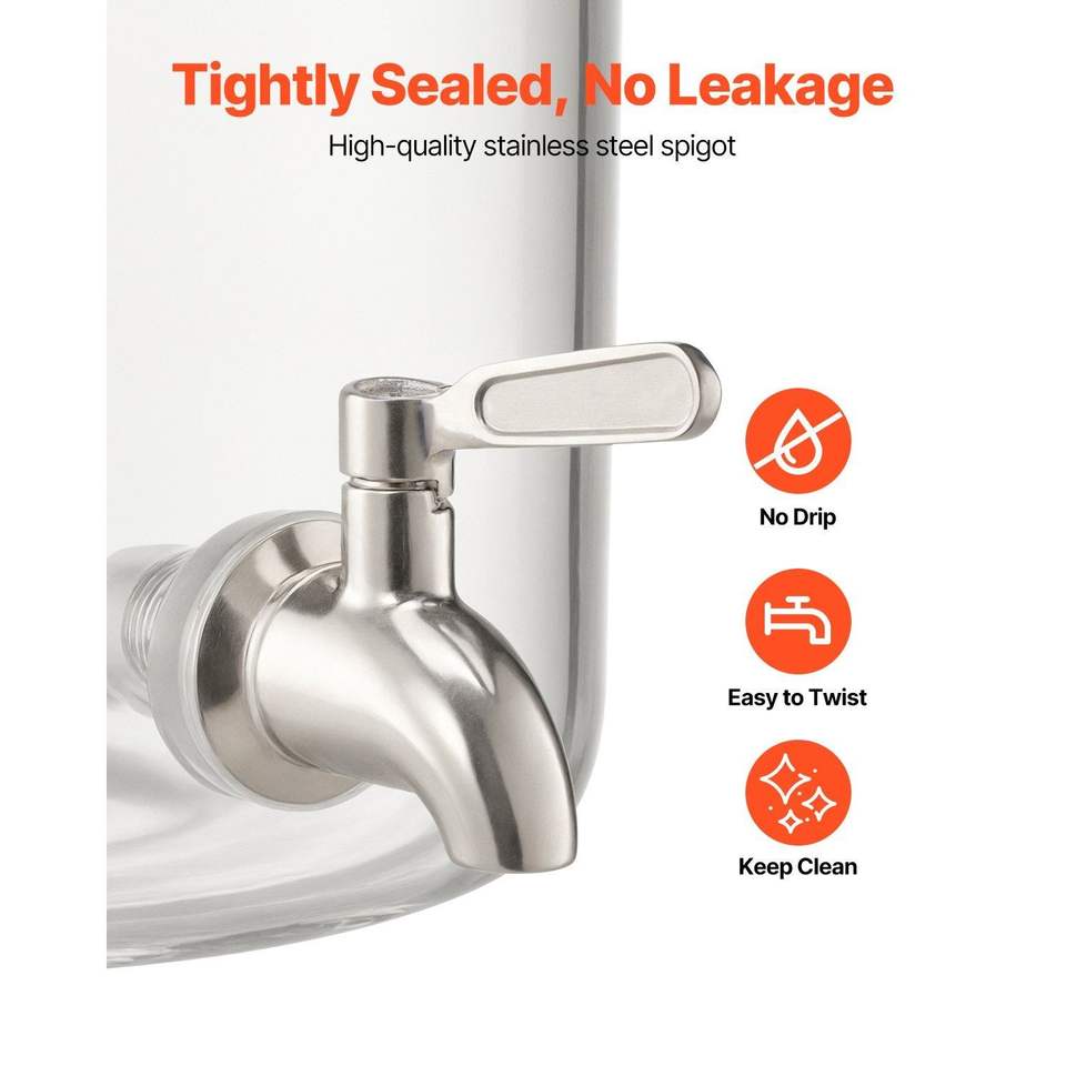 Dispenser per Bevande da 2,2 Galloni con Rubinetto in Acciaio Inox, Erogatore di Succo in Vetro su Supporto in Legno per Feste con Ghiaccio