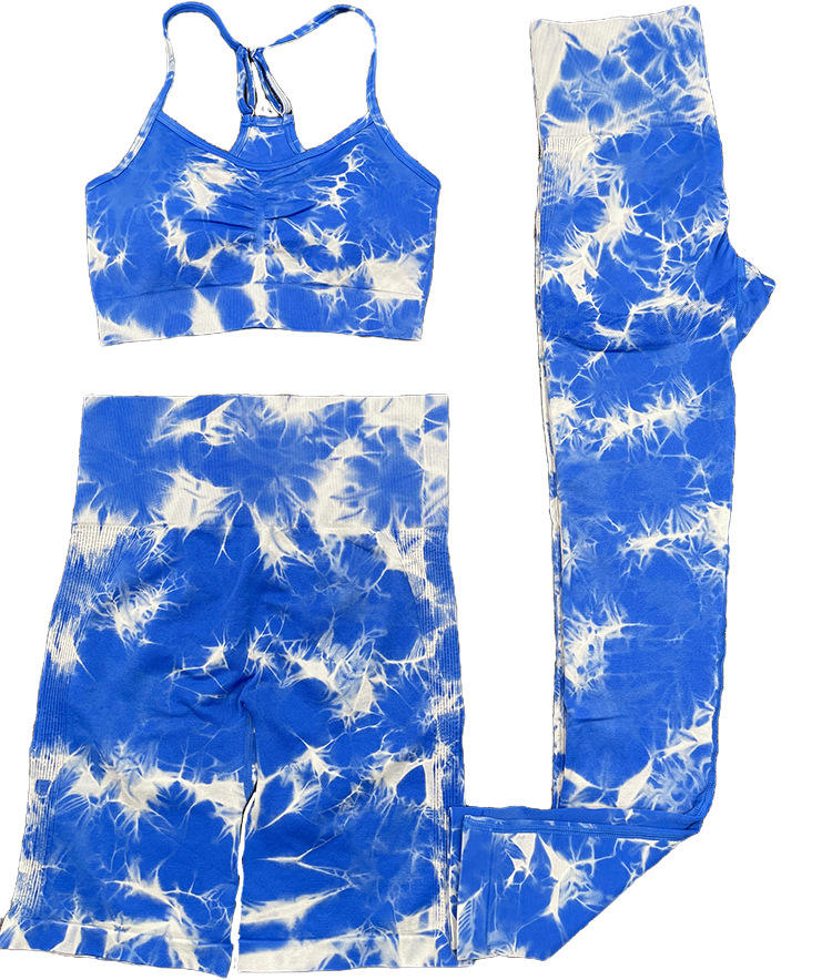 2 / 3 / 4 Pcs Tie Dye Gym Fitness Leggings corti Butt Lifting TieDye Soft Workout collant Tie-Dye regolabile reggiseno arricciato Yoga Set