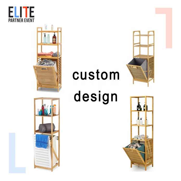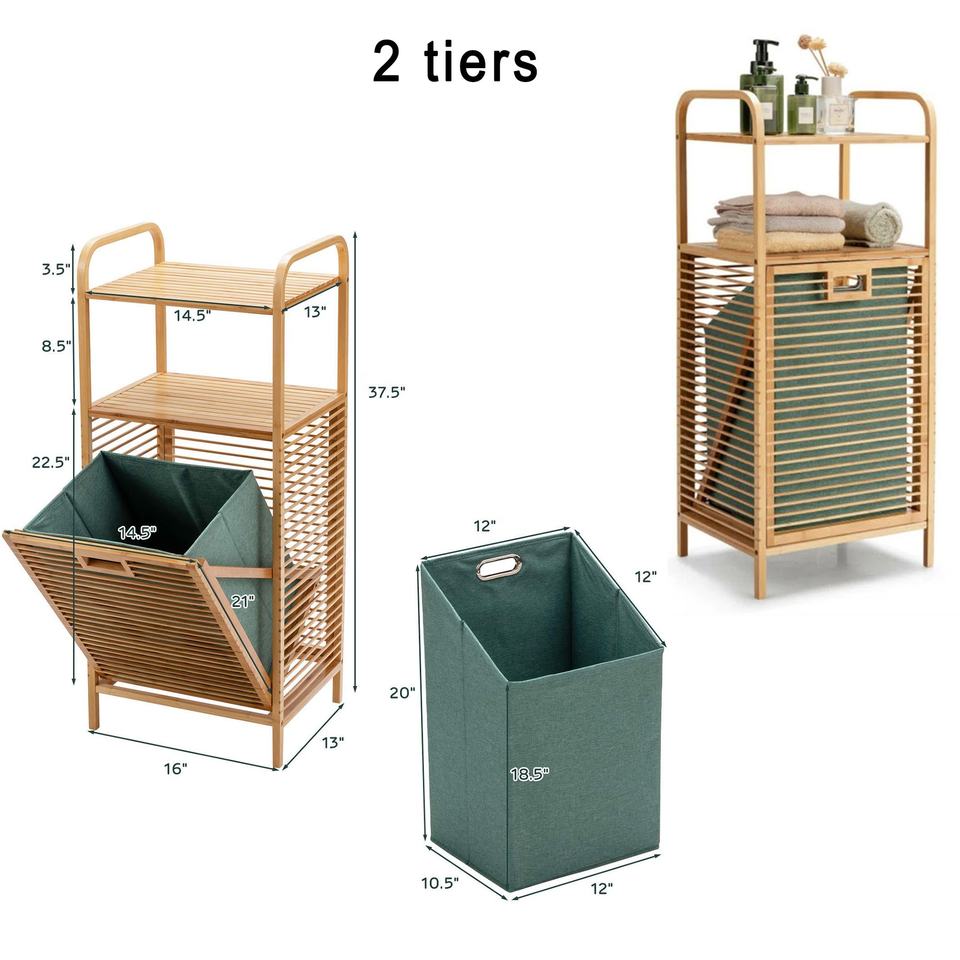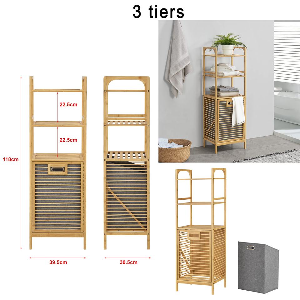 Cesto Portabiancheria Autoportante a 2, 3, 4 Ripiani in Bambù con Apertura a Ribalta e Sacco Interno in Tessuto Removibile