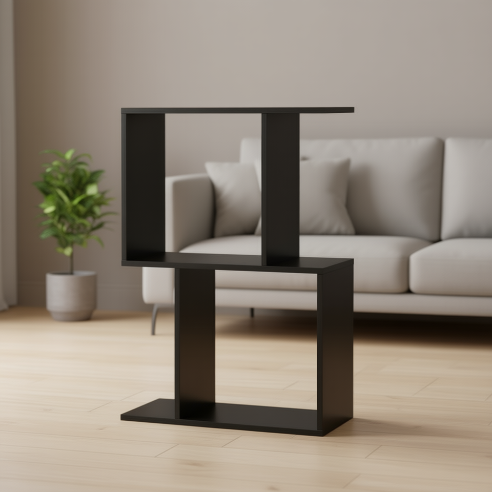 Libreria a S in Legno a 3 Ripiani, Design Moderno Minimalista per Soggiorno, Camera da Letto, Ufficio, Mobile Autoportante per la Casa