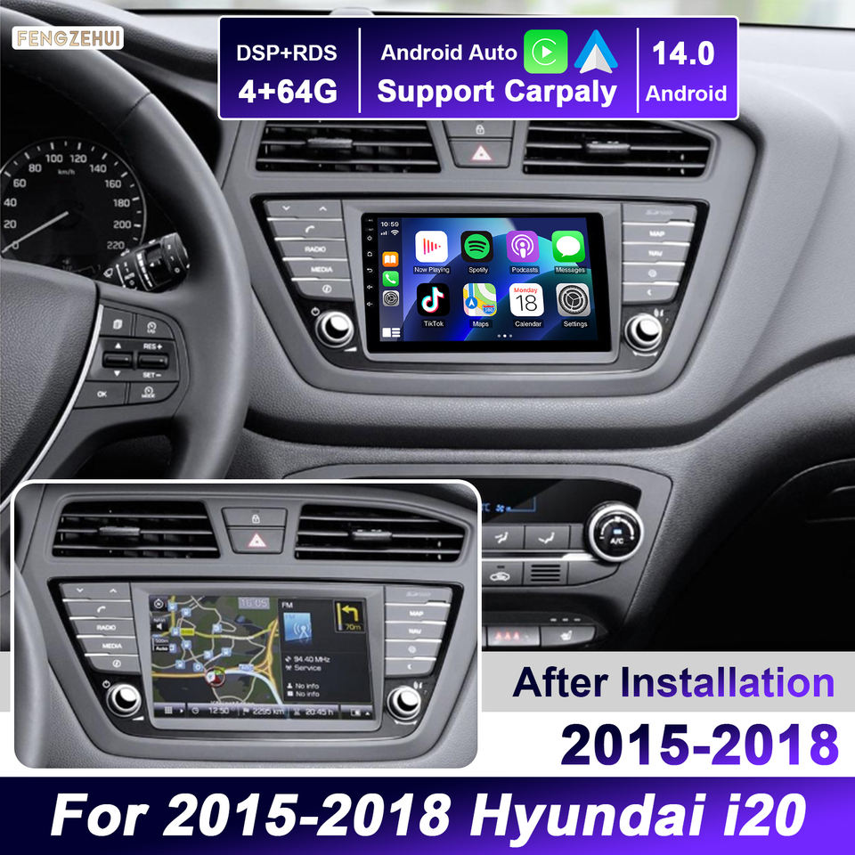 Autoradio Android 14 2+32G per Hyundai I20 2015-2018 con Carplay, Android Auto, Schermo 9 Pollici, WiFi, FM/RDS, SWC, Schermo Diviso, Telecamera AHD