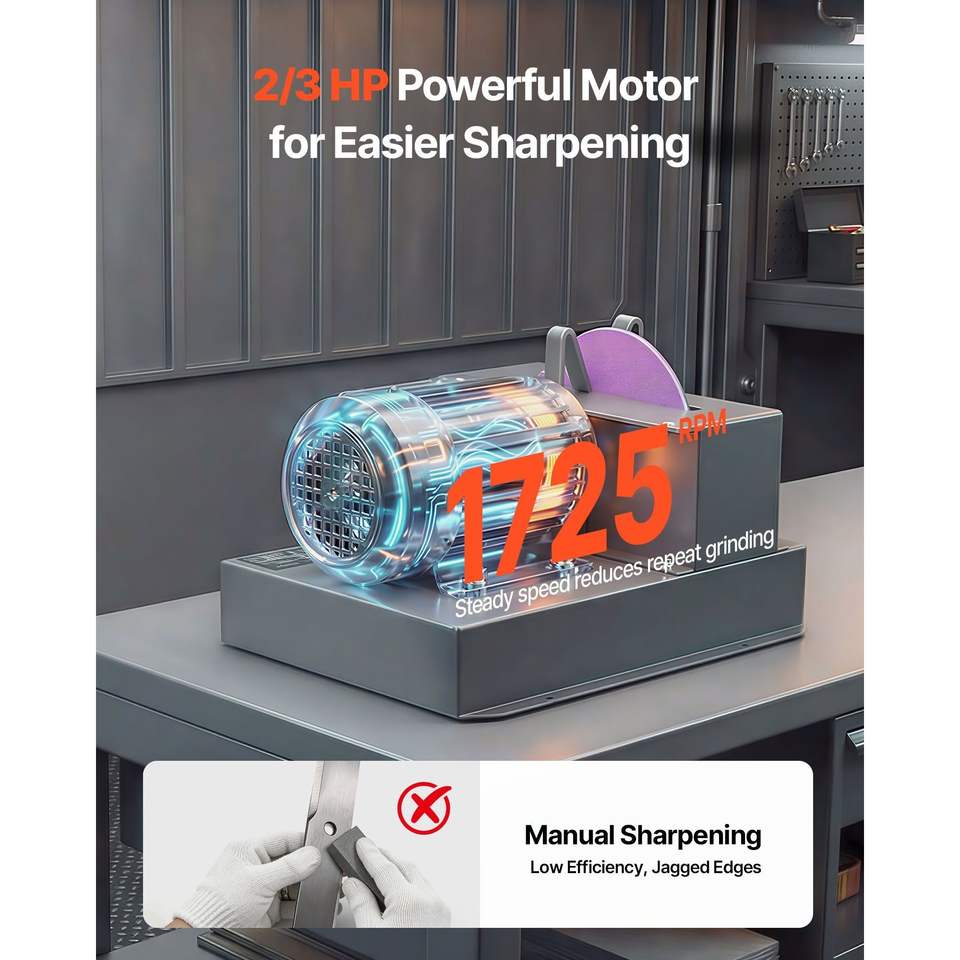 Affilatrice per lame di tosaerba da 2/3 HP con mola in ceramica da 7 pollici e bilanciatore, affilatore a 30-40 gradi, ricambi e accessori per tosaerba