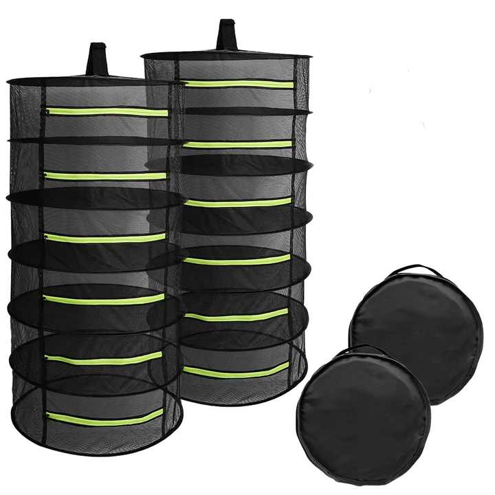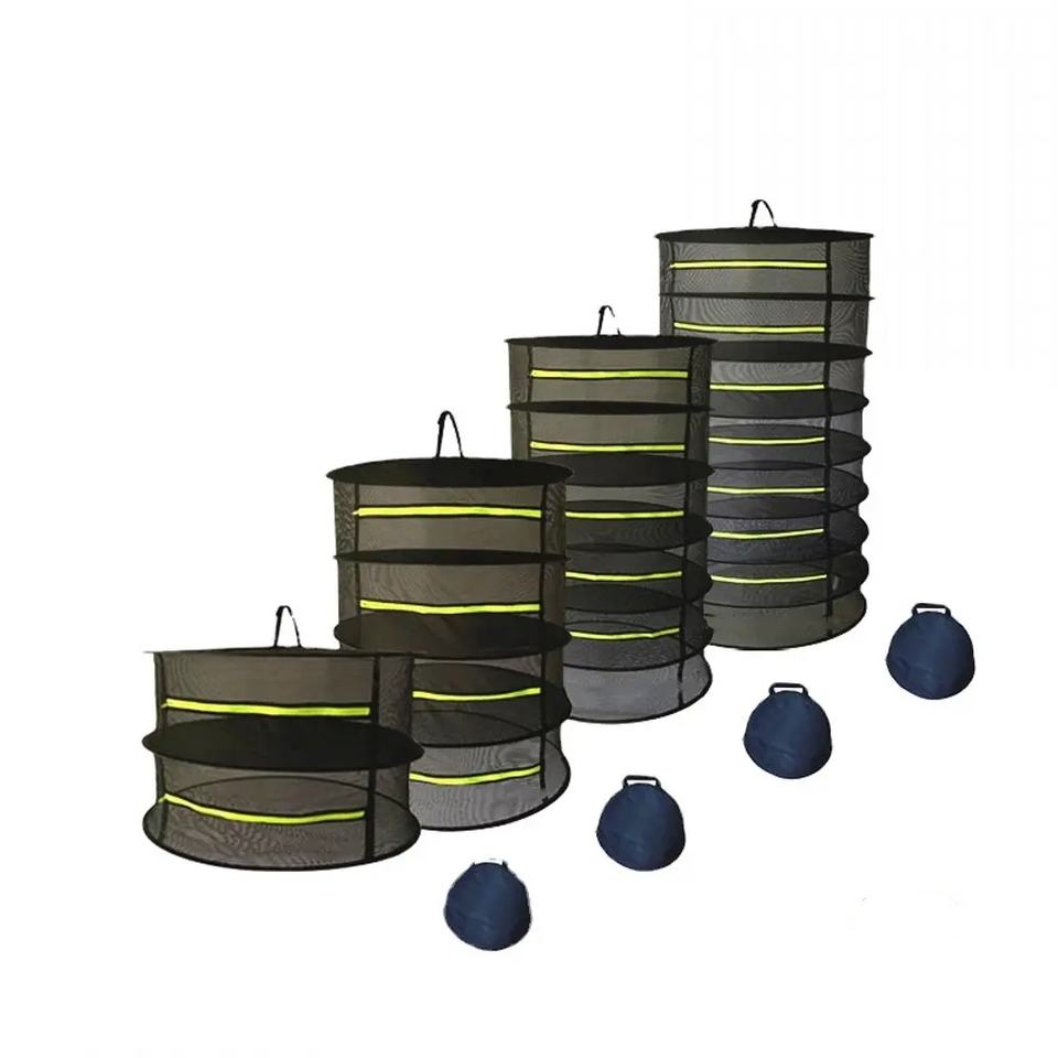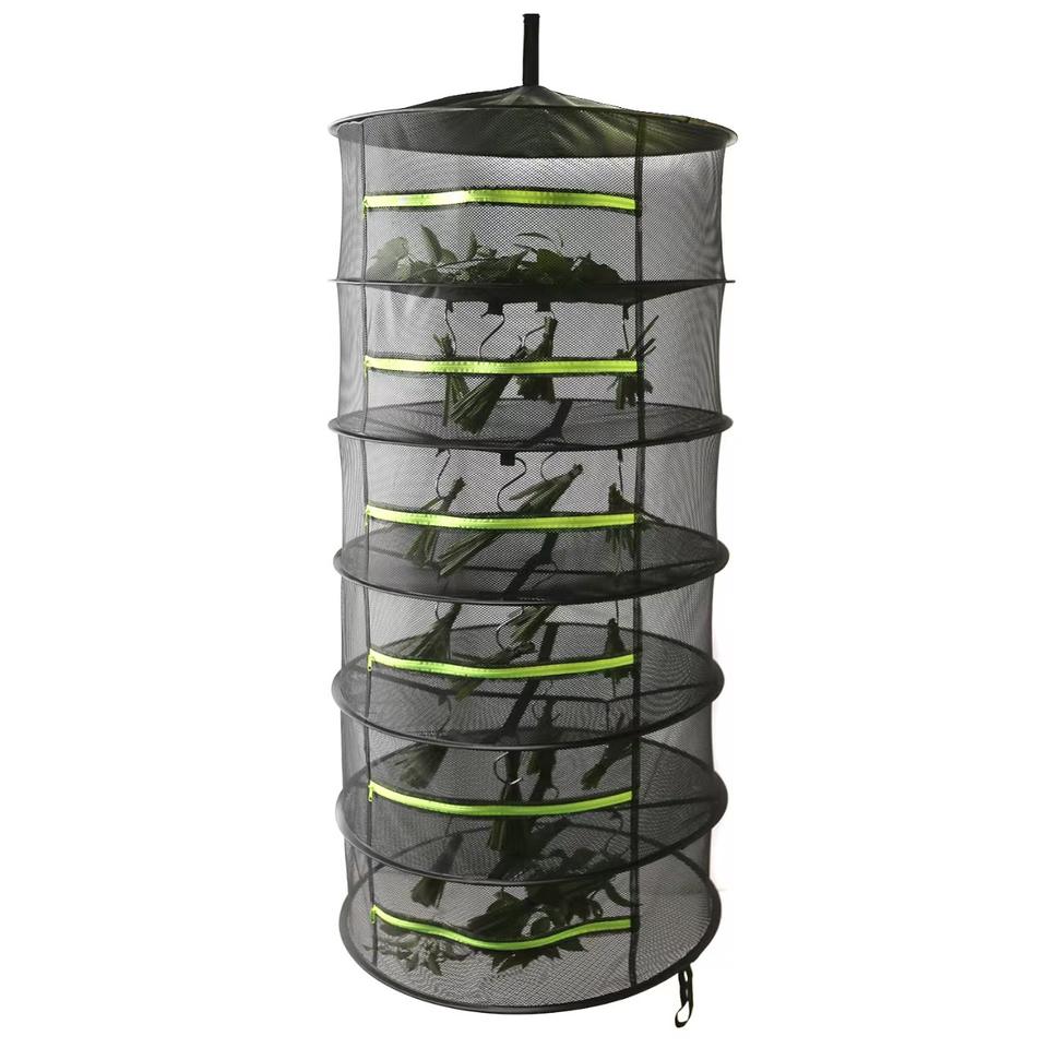 Rete di Essiccazione Pieghevole a 2/4/6/8 Strati in Nylon Nero Impermeabile con Cerniere per Erbe e Piante da Giardino