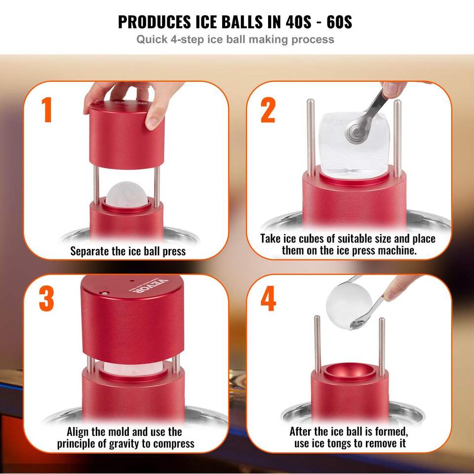 Kit per Sfere di Ghiaccio in Lega di Alluminio Aeronautico da 2,4 Pollici, Pressa per Ghiaccio da 60mm con Pinze e Vassoio Raccogligocce - Strumento Premium per Cubetti di Ghiaccio