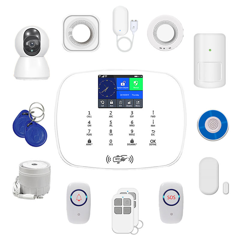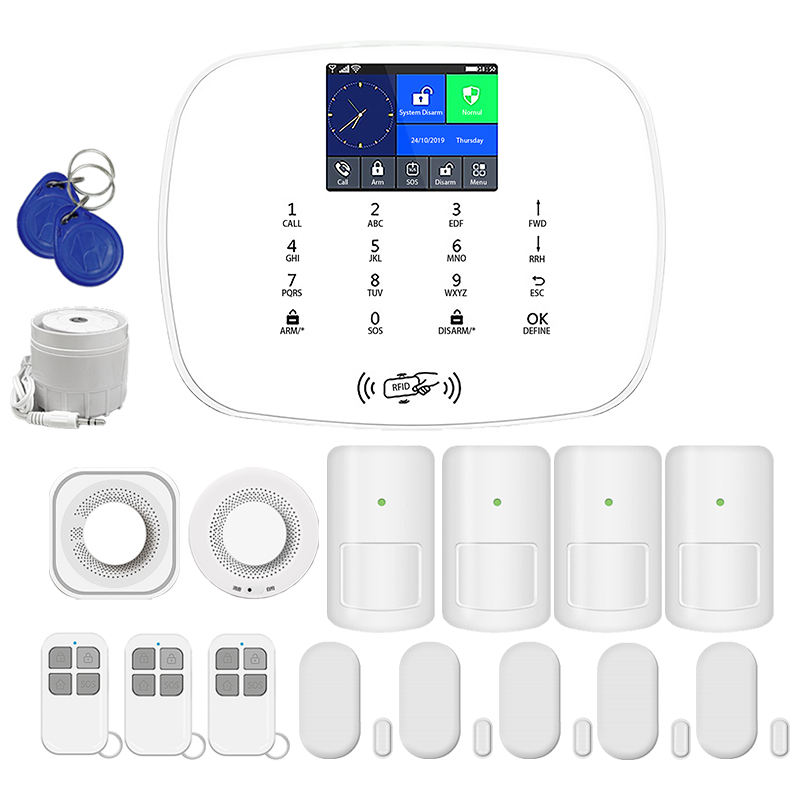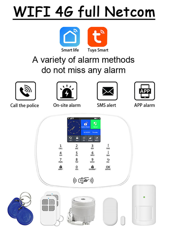 Sistema di Allarme WiFi+4G Tuya da 2,4 Pollici con Rilevamento Incendio, Sensore a Infrarossi, Sensore per Porte e Finestre 433Mhz, Pannello di Sicurezza Domestica