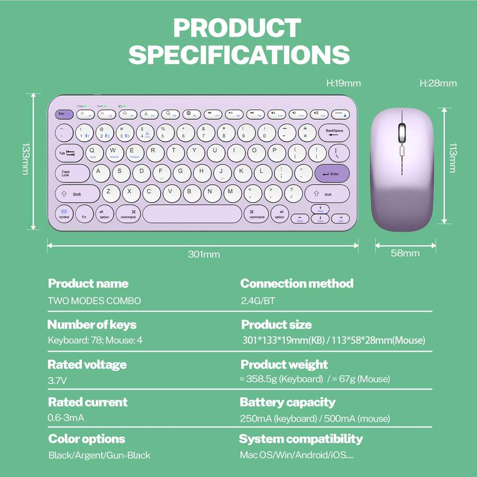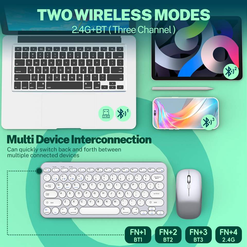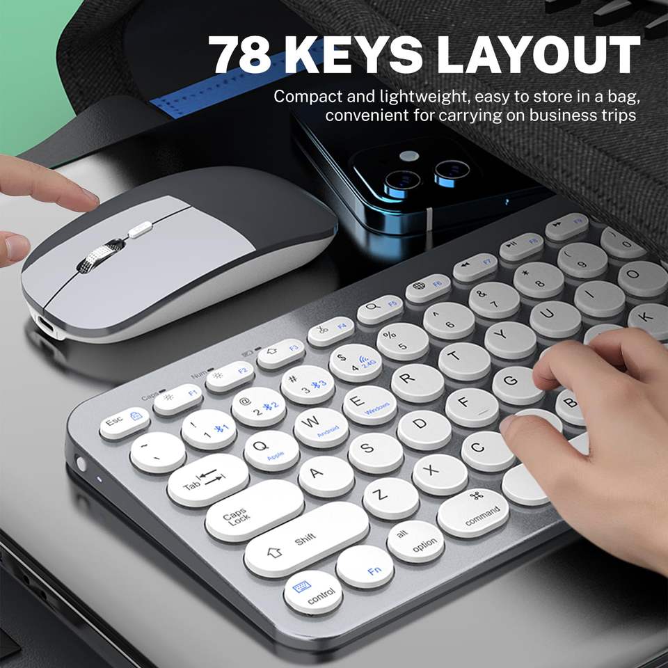 2.4G Silent Adjustable 1600 DPI Compact Multi-Device Bluetooths Keyboard and Mouse Combo Wireless Keyboard and Mouse