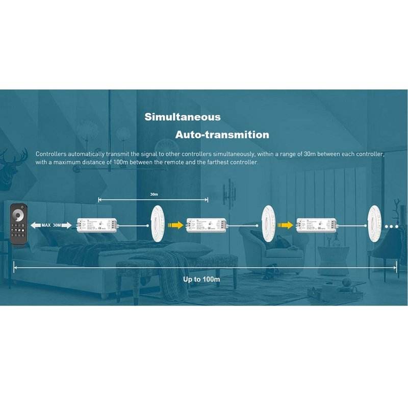 Dimmer LED Manuale con Telecomando RF 2.4GHz, Controllo Touch per 8 Zone Magnetiche, Compatibile con Alimentatore Skydance DMX