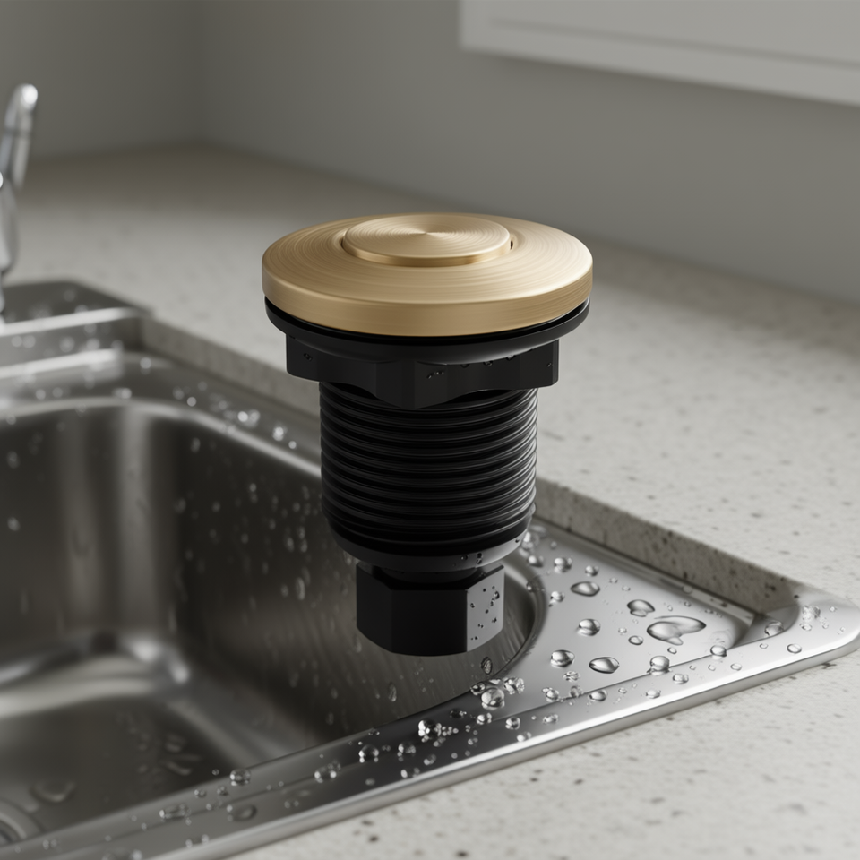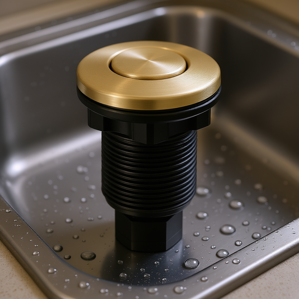 Kit Smaltimento Rifiuti con Interruttore ad Aria a 1 Uscita, Finitura Oro Spazzolato, per Tritarifiuti, Visibilità Migliorata