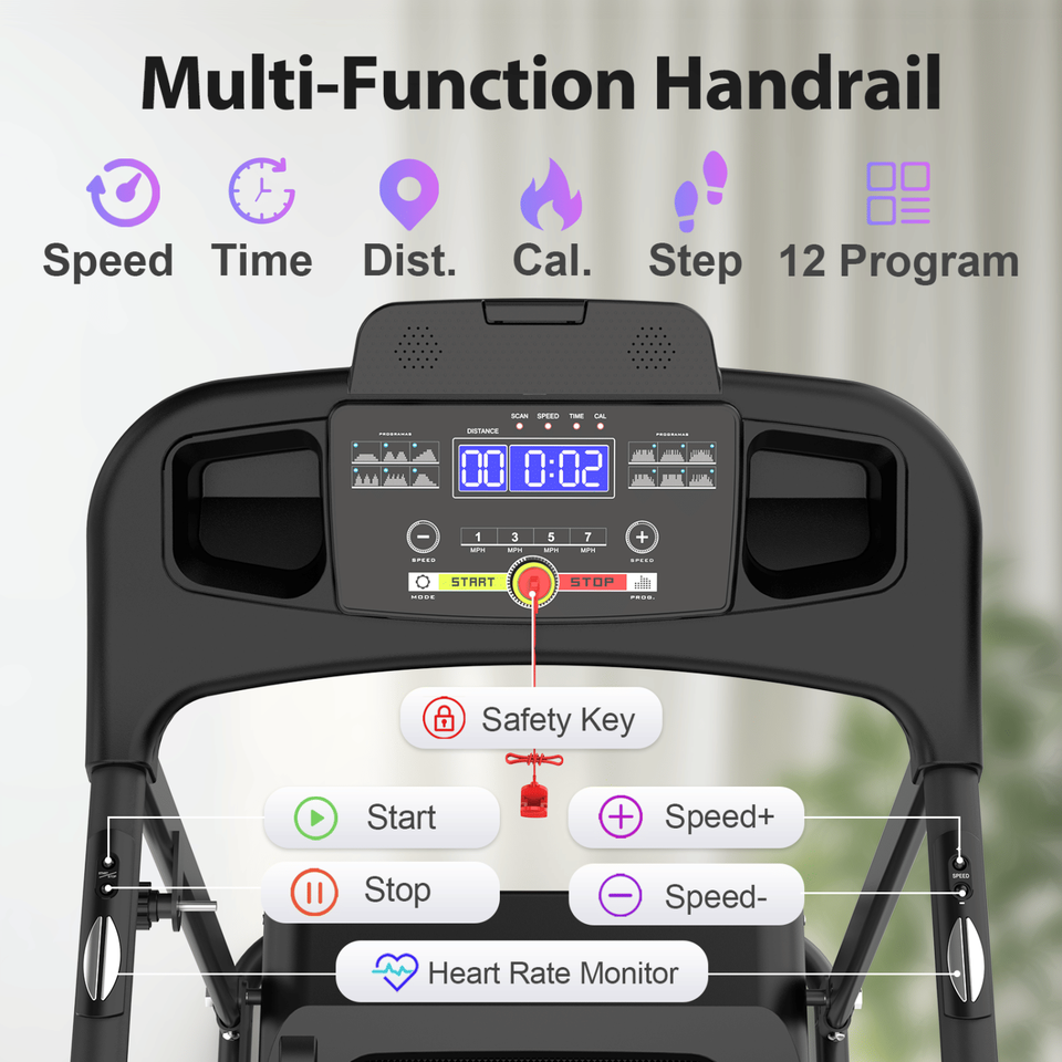 2.5HP 12 KM/H tapis roulant elettrico pieghevole per Bluetooth Music Cup Holder sensore di frequenza cardiaca Indoor Home palestra esercizio Fitness