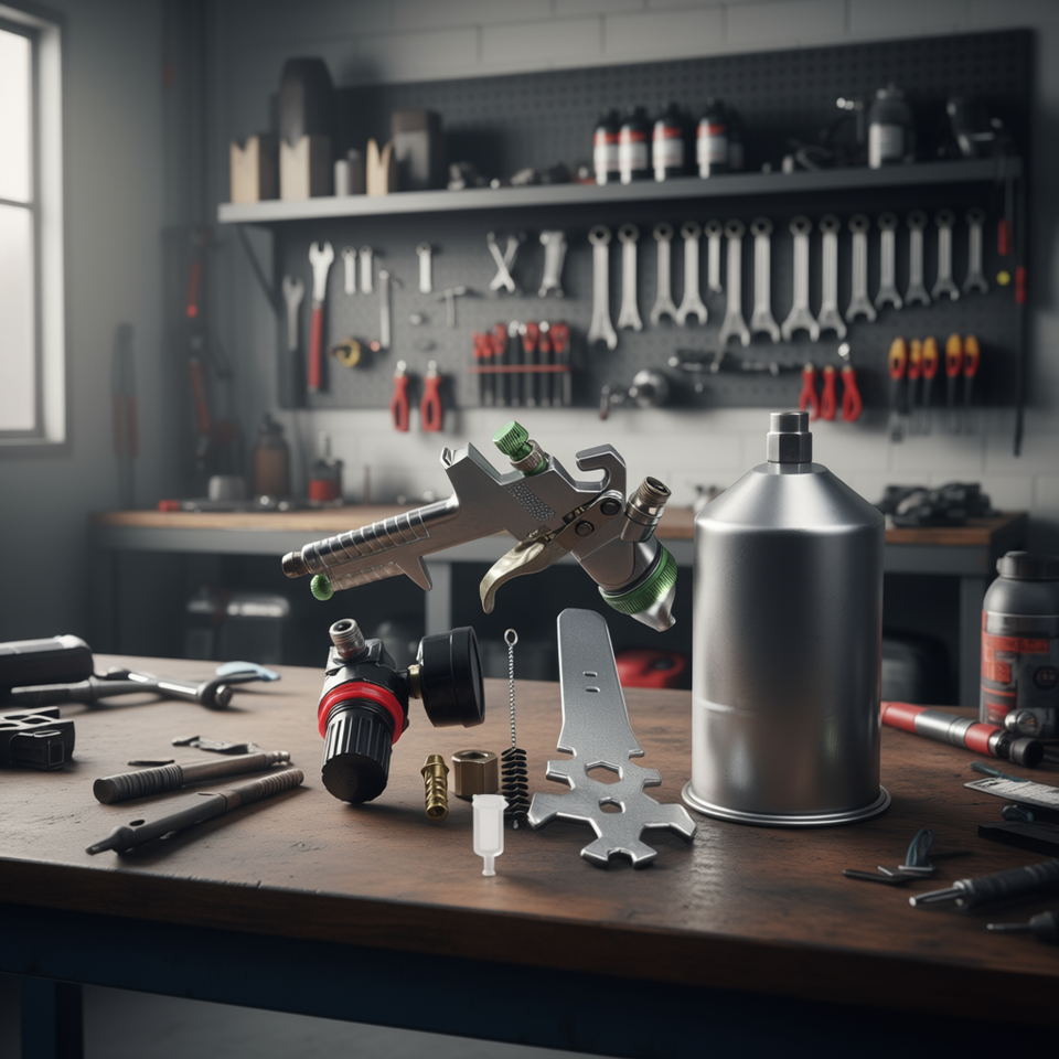 Kit Pistola a Spruzzo con Ugello da 2,5mm, Serbatoio da 1,0L, Spruzzatore di Vernice in Metallo a Gravità per Verniciatura Veicoli