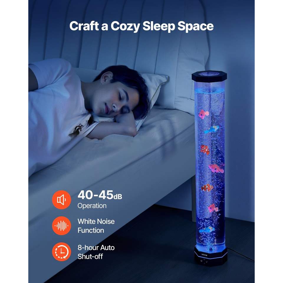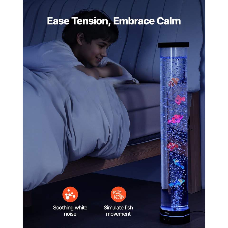 2.67 ft Sensory Bubble Tube Aquarium Light 6 Floating Fish & 16 Color Effects Remote Control Sensory Bubble Fish Tube Lamp