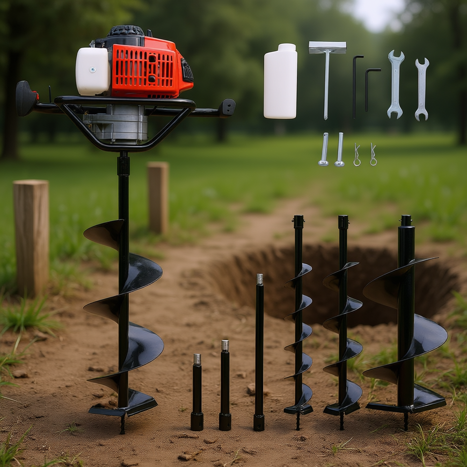Trivella a Benzina 63cc con Motore a 2 Tempi 2.7HP, con Punte e Aste di Prolunga per Uso Esterno