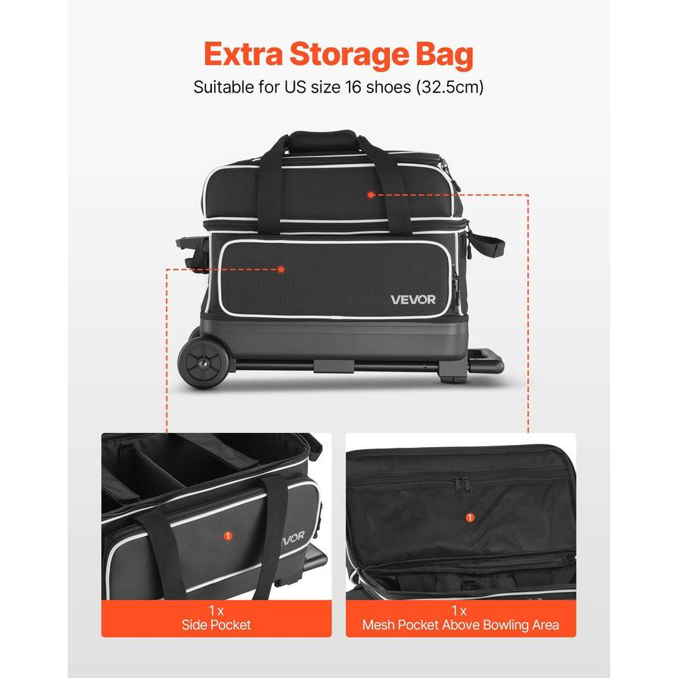 Borsa per 2 Palle da Bowling con Ruote e Scomparto Separato per Scarpe fino alla Taglia US 16
