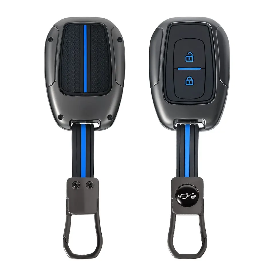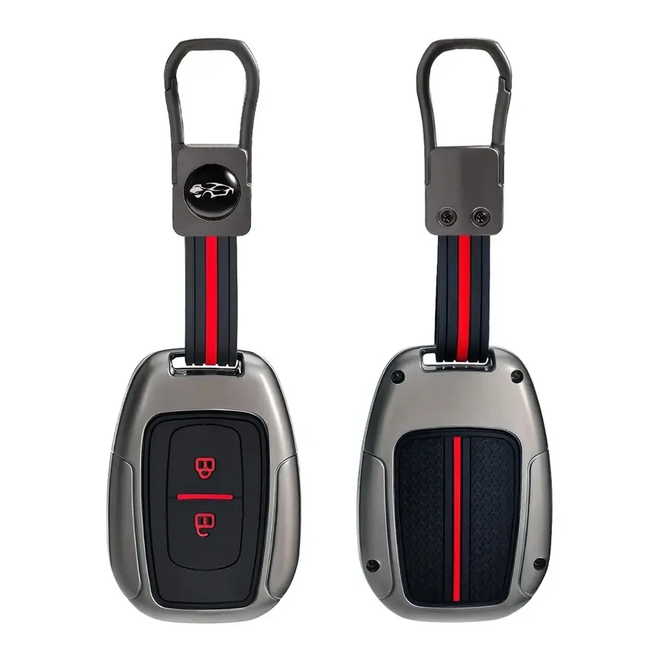 Guscio portachiavi a 2 pulsanti in lega di zinco e silicone per Renault Kwid, Traffic, Symbol, Dacia Sandero, Logan, Duster 2016-2018