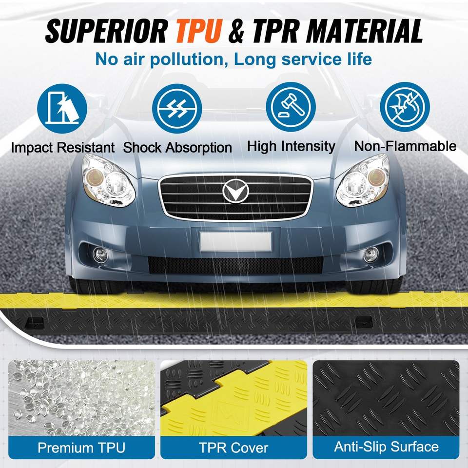 Rampa Protettiva per Cavi a 2 Canali in TPU Rinforzato, Capacità 22000 Libbre/Assale, Copricavo per Vialetti e Traffico