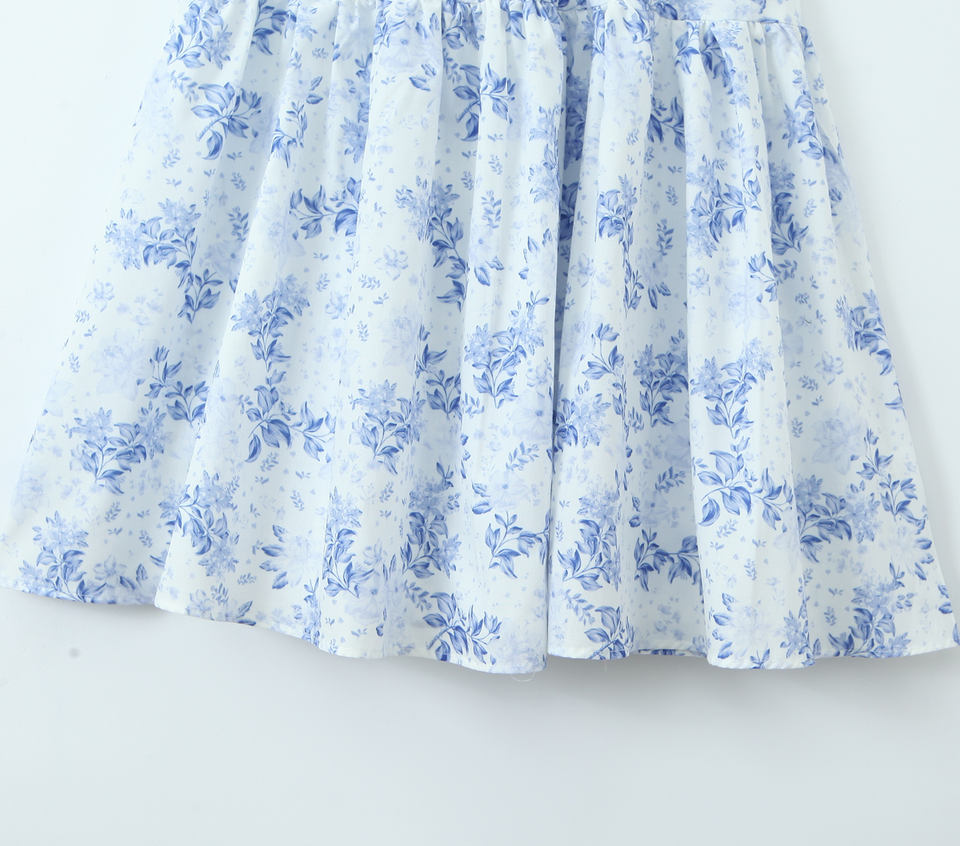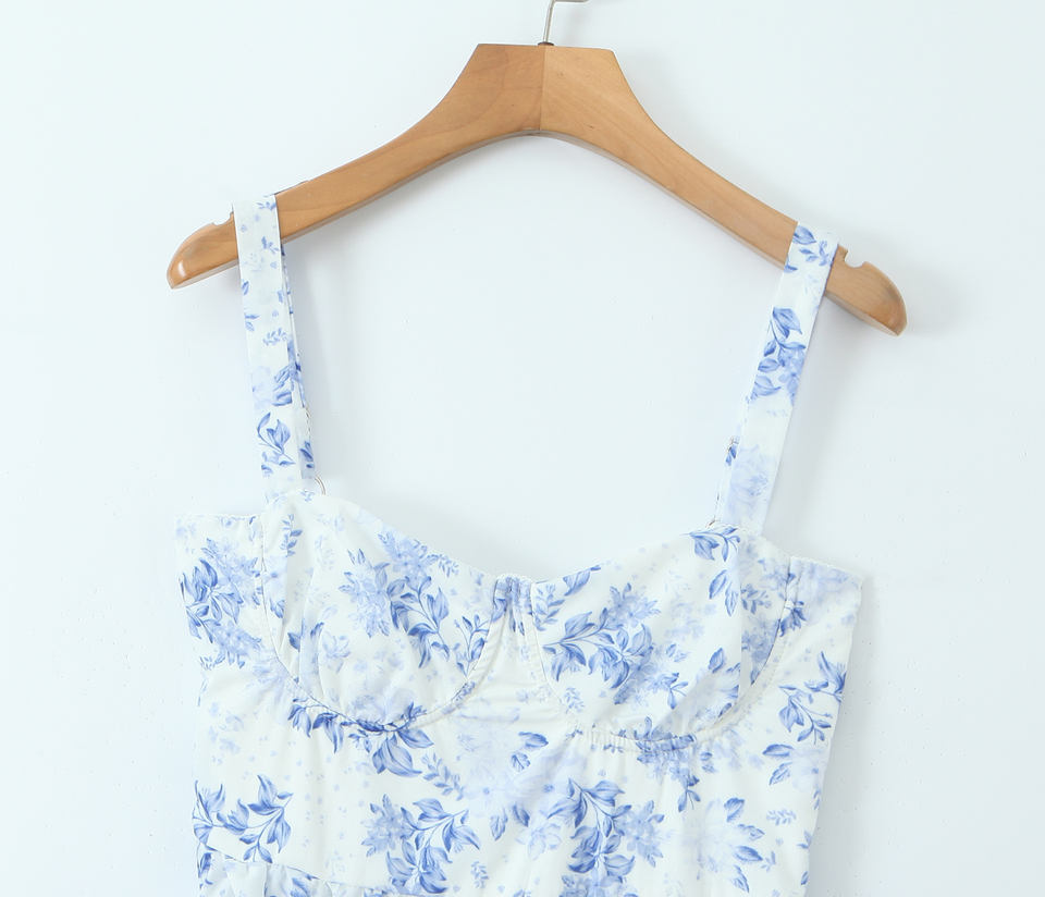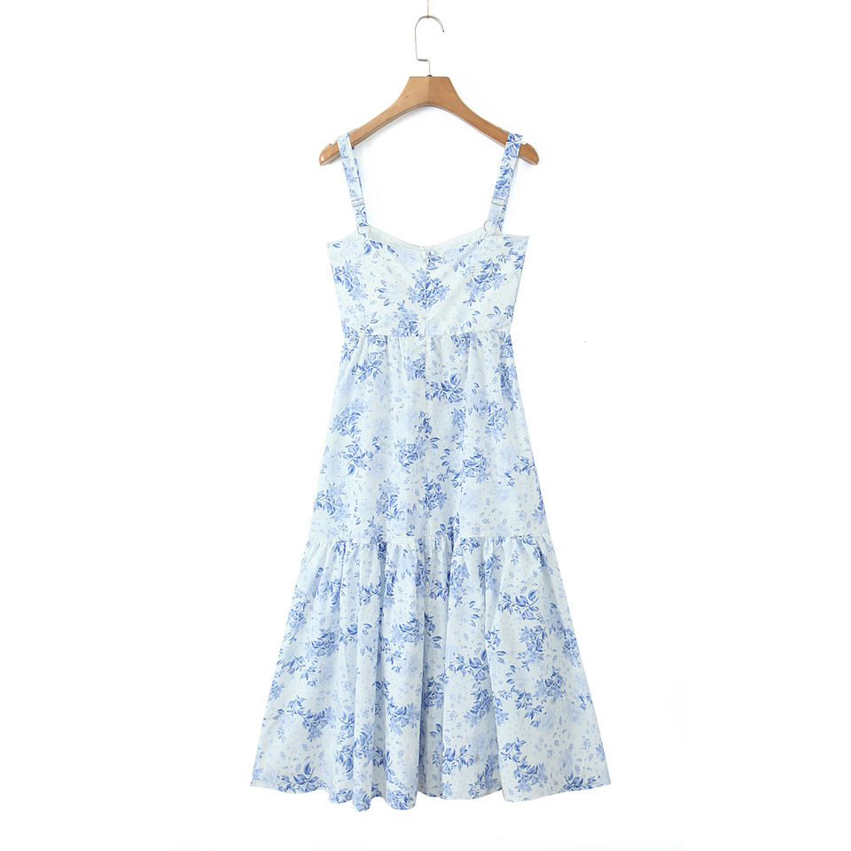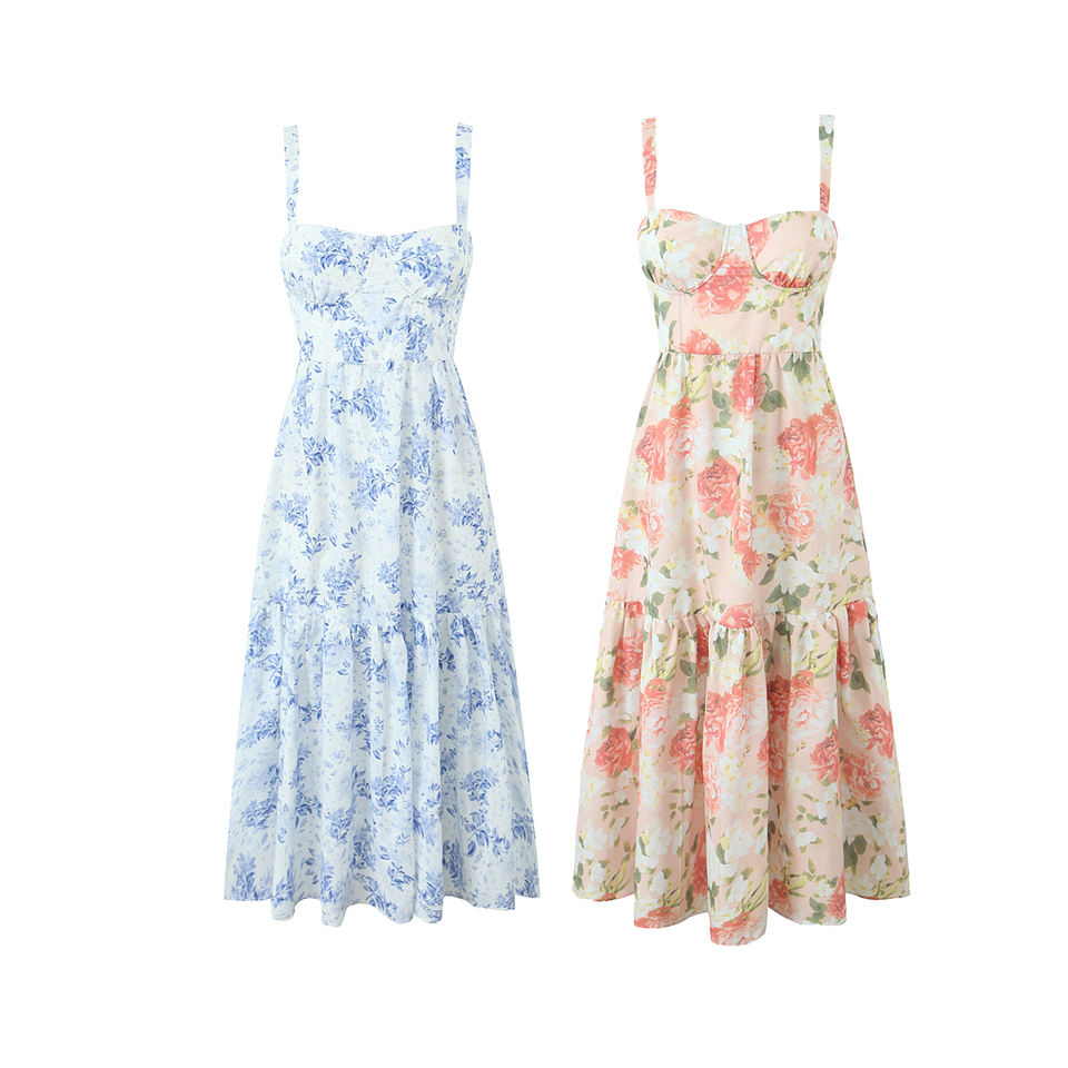 Abito lungo in cotone casual da donna con stampa floreale a due colori e spalline sottili