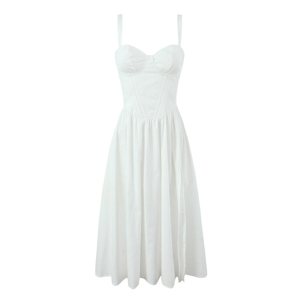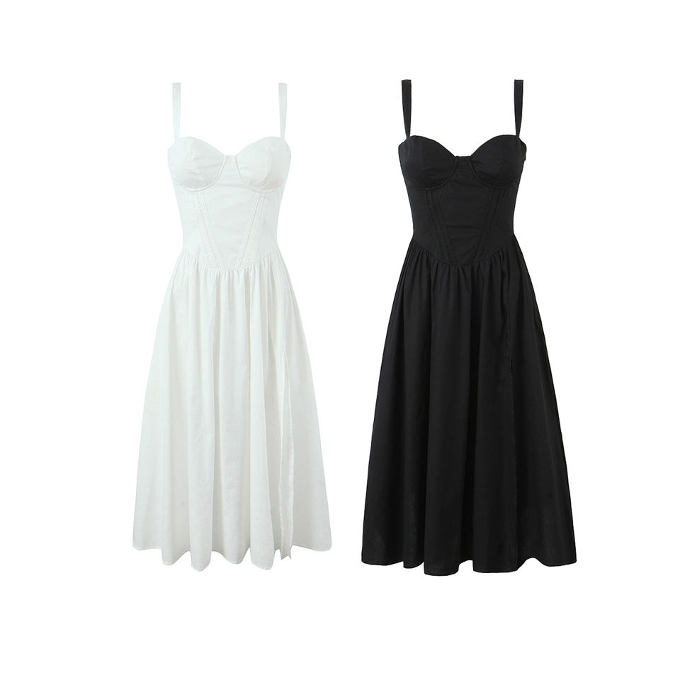 Abito Slip in Cotone da Donna Casual alla Moda con Spalline Sottili in Due Colori