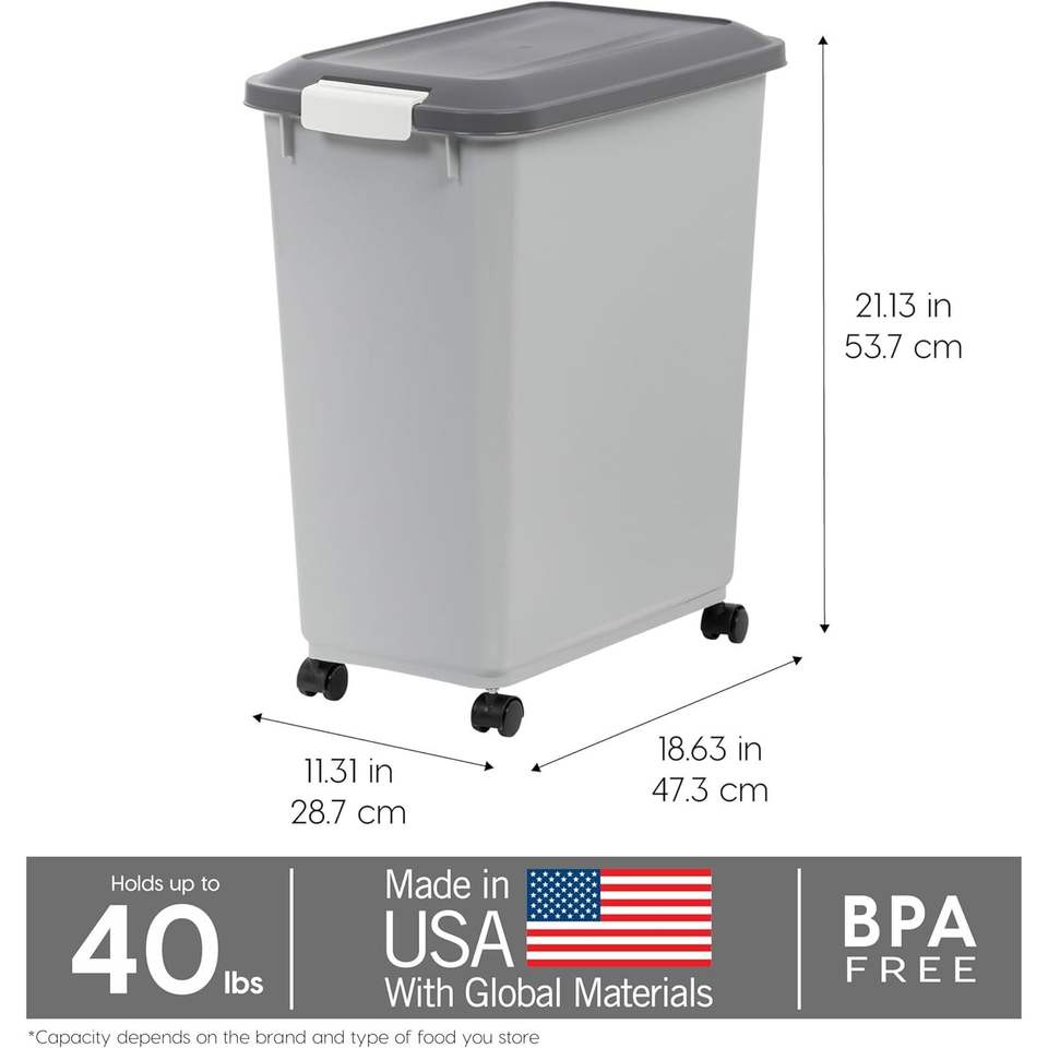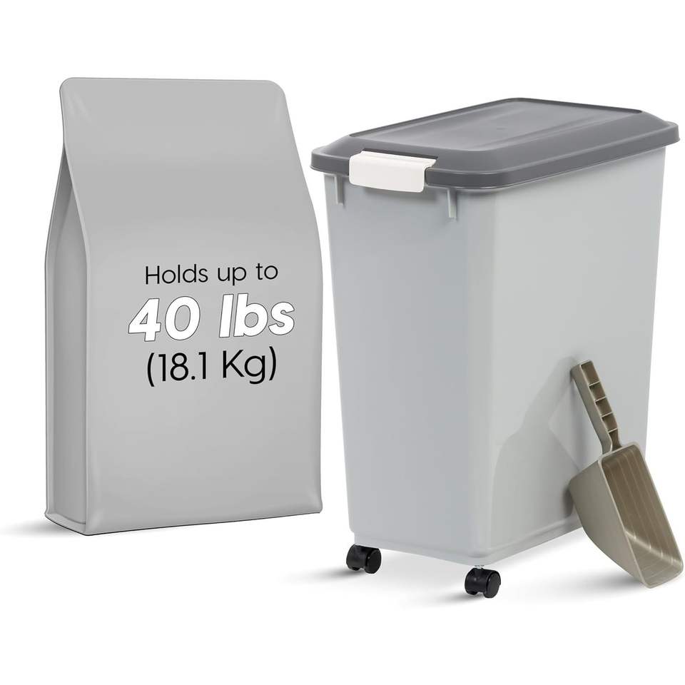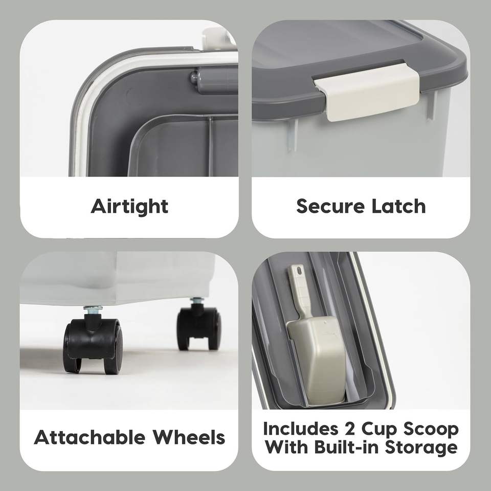 Contenitore per Cibo per Cani da 2 Tazze con Ruote, Coperchio Ermetico e Paletta Integrata, Capacità fino a 18 kg, Contenitore per Alimenti per Animali Domestici, Ciotole e Mangiatoie