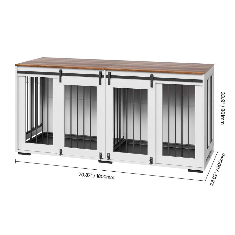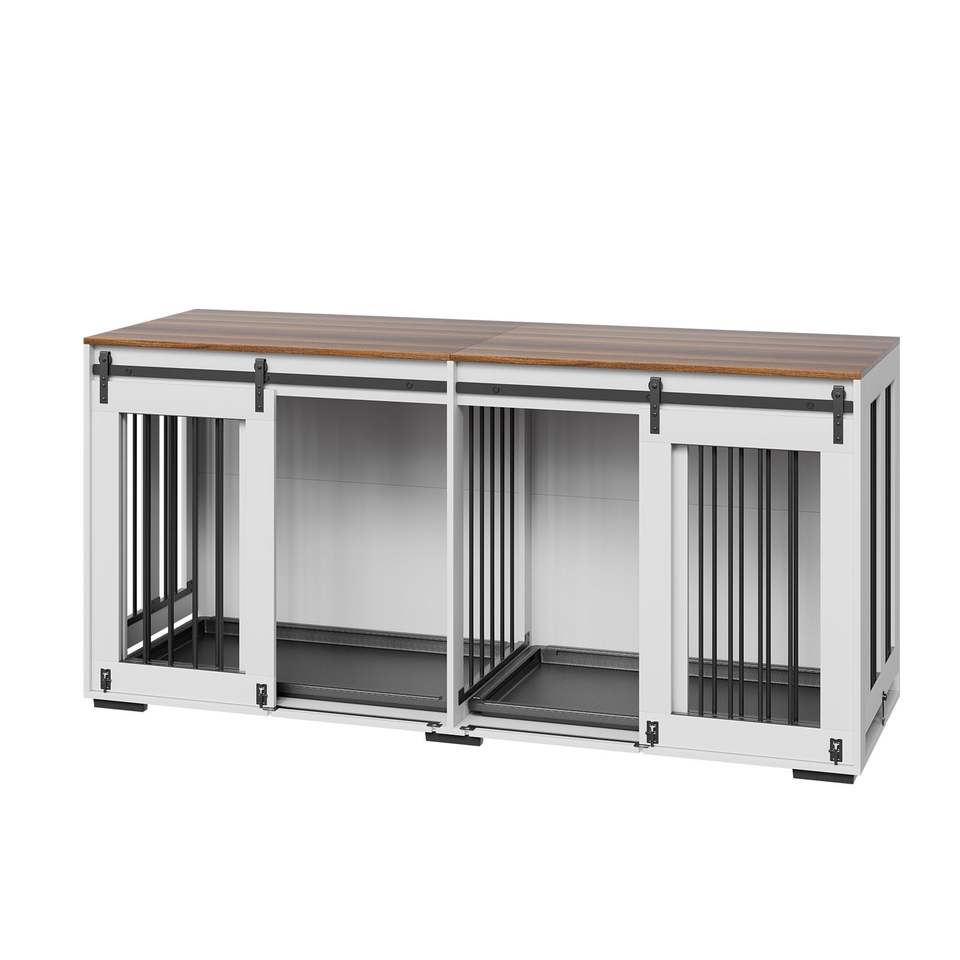 Cuccia per Cani Grande da 183 cm con Supporto TV, Doppia Porta Scorrevole, Cuccia Doppia Rimovibile per Cani, Mobile per Animali Domestici