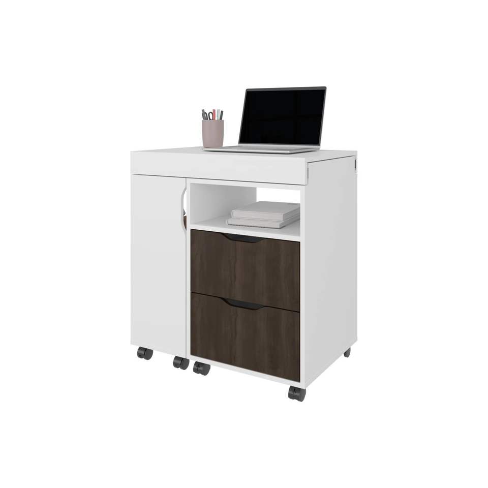 Scrivania per Computer in noce bianca e macchiata allungabile a 2 cassetti con meccanismo scorrevole