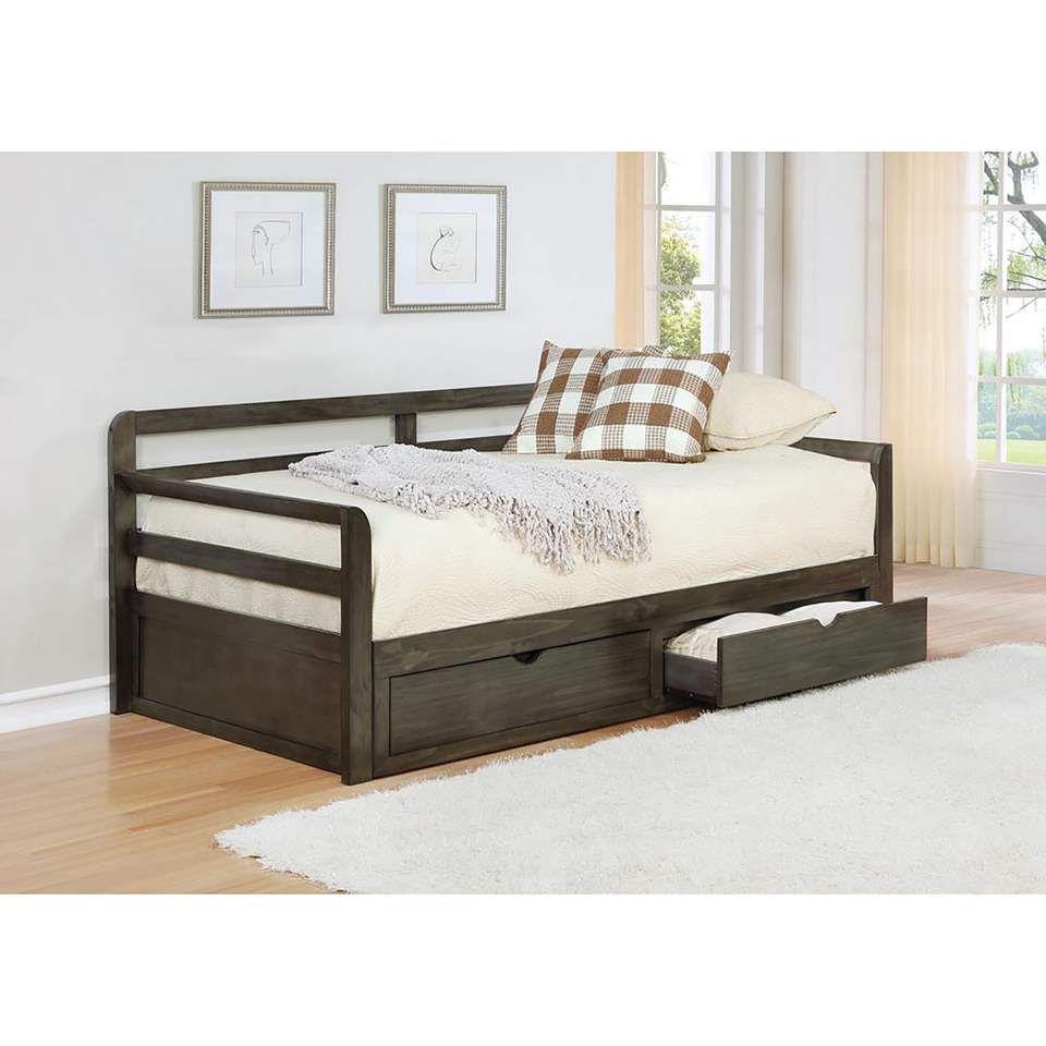 Divano letto grigio a 2 cassetti con prolunga per mobili da soggiorno