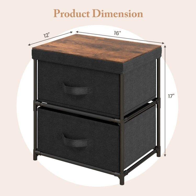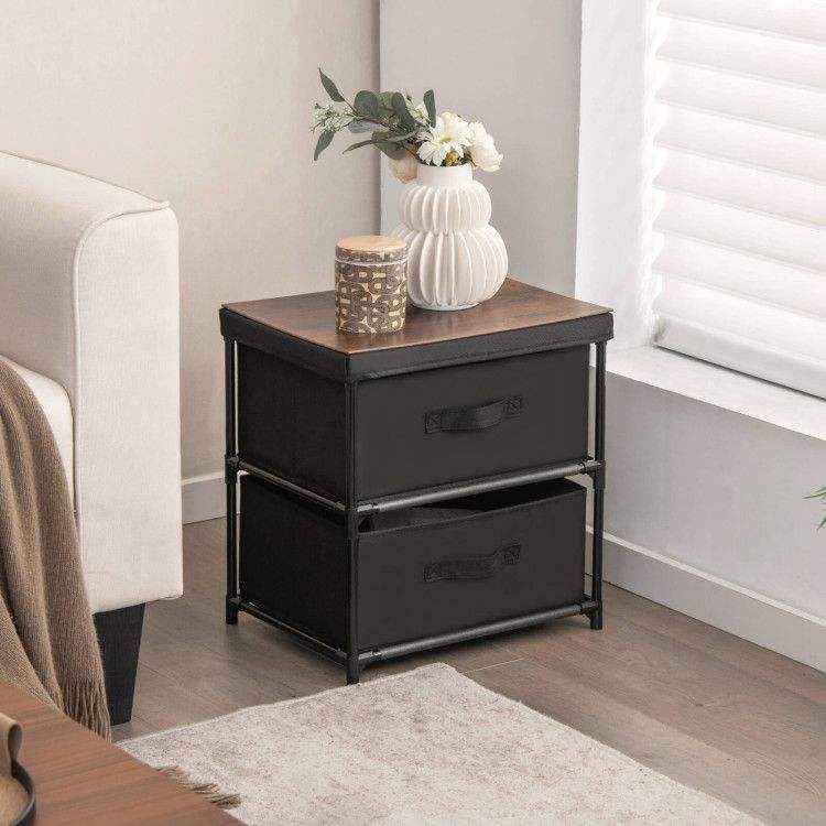 Comodino a 2 cassetti con maniglie resistenti e contenitori in tessuto rimovibili