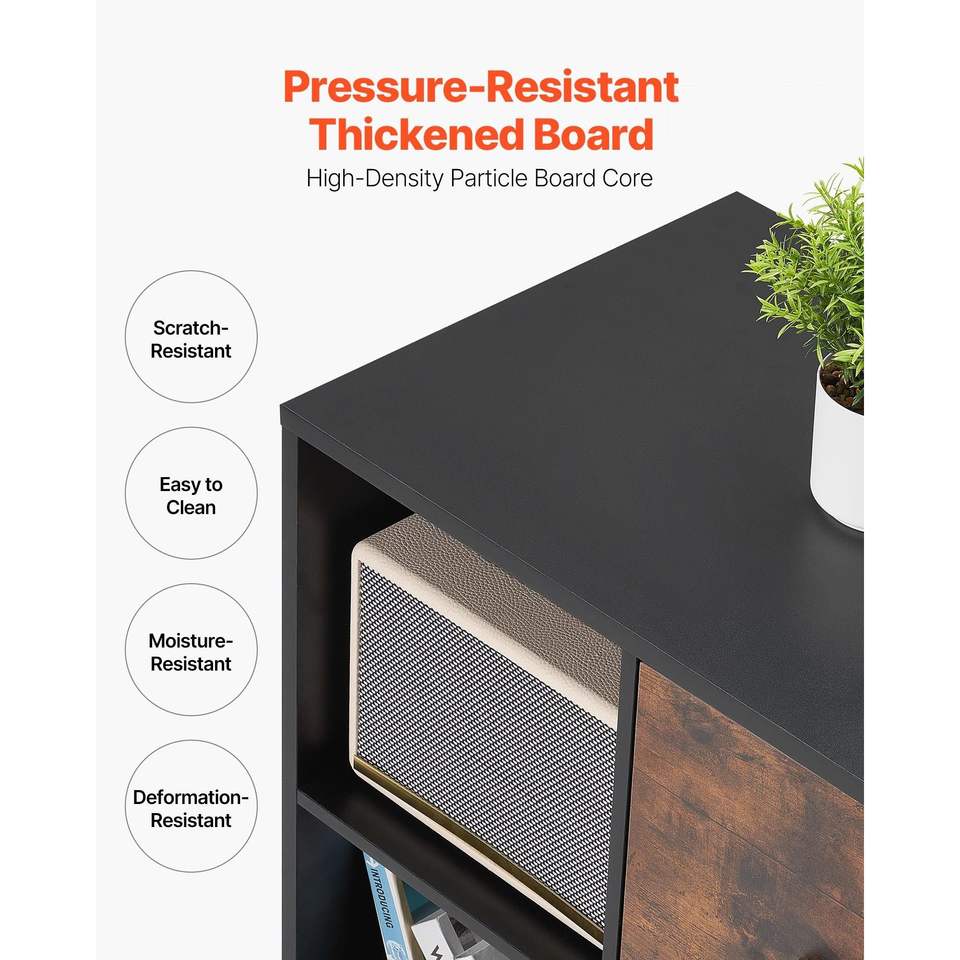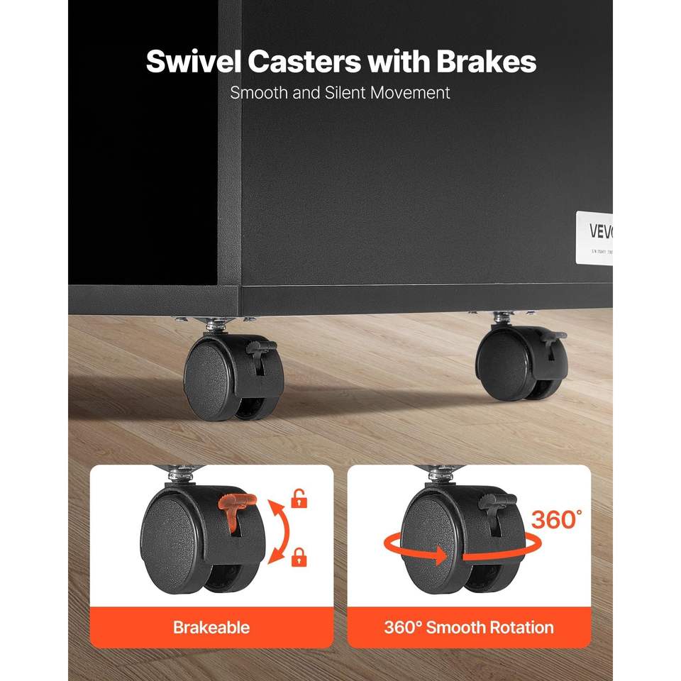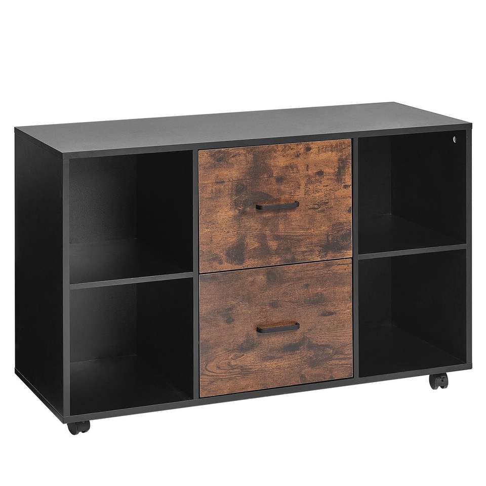 Armadietto Portadocumenti Mobile in Legno a 2 Cassetti con Ripiani Aperti e Serratura, Archivio Laterale con Ruote e Design Moderno