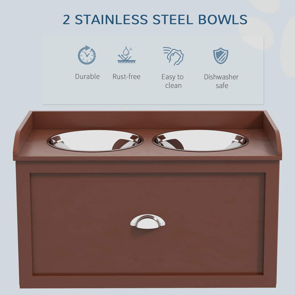 Set di 2 Ciotole Rialzate per Cani di Taglia Grande, Colore Marrone, con Stazione di Alimentazione e Contenitore, Modello D0100X3HZUX