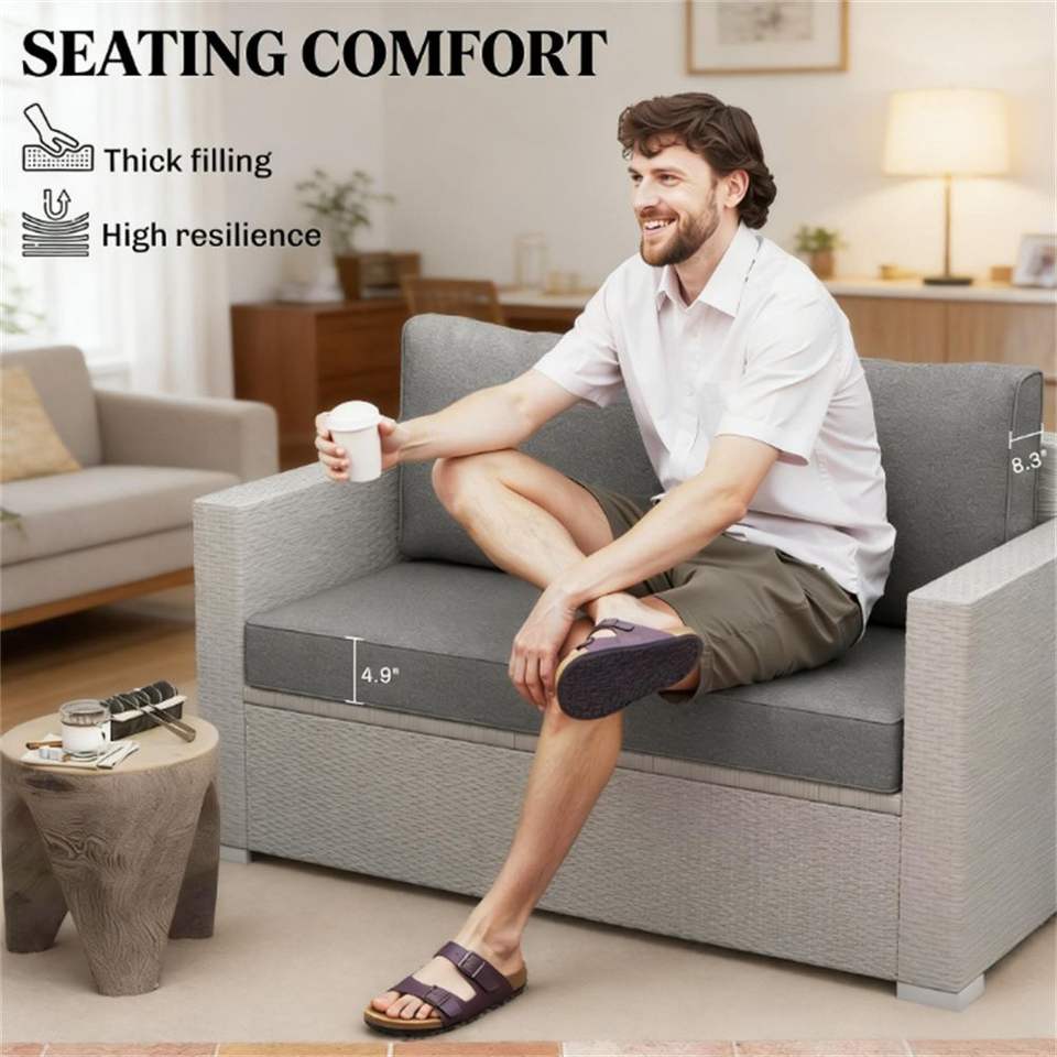 2 Cuscini Grigi per Divano da Esterno, Solo Cuscini per Arredamento da Giardino
