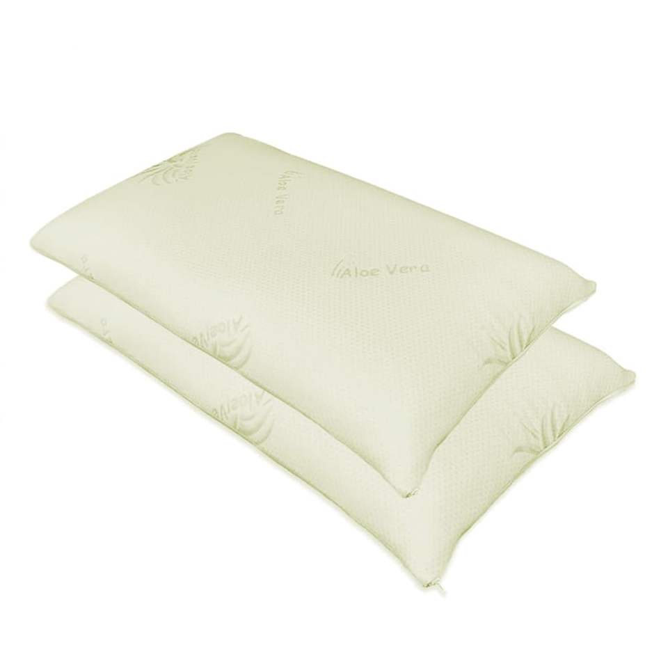 2 Green 65x40x9/11 cm Bed Pillows Double Wave Aloe Vera Memory Foam Removable-for Hotels and B&Bs