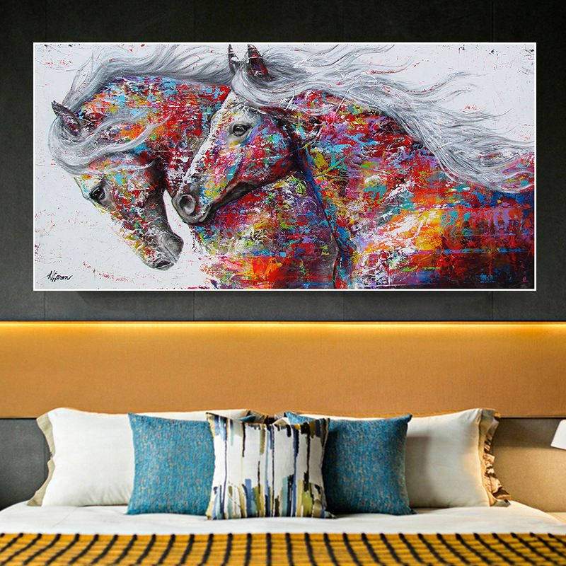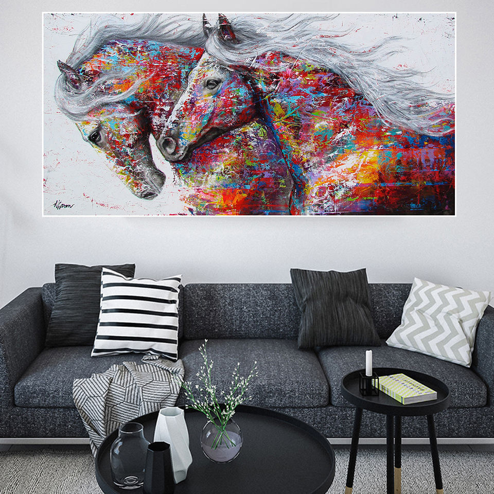 Product name:2 Horse Art Painting on Canvas Graffiti Two Running Horses