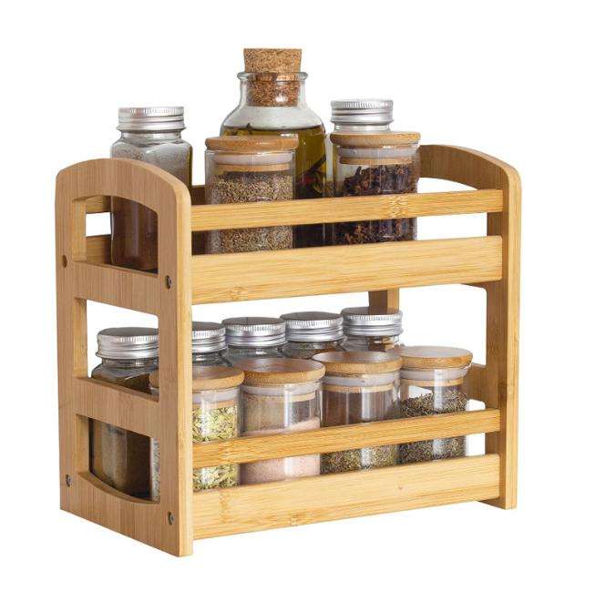 Portaspezie in bambù e legno a 2 strati pieghevole armadio da cucina con funzione pieghevole porta mensola da bagno