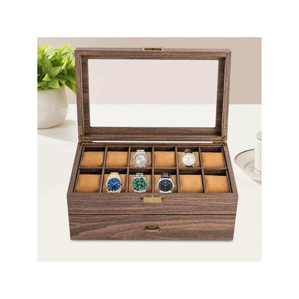 Scatola per orologio in legno scamosciato a 2 strati con custodia da 24 Slot per uomini e donne porta orologi Organizer con cassetto elegante scatola Organizer per orologi