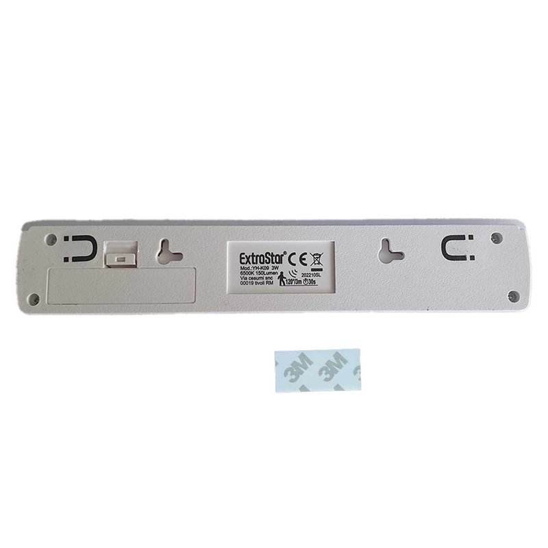 Luce Notturna LED con Sensore di Movimento a 2 Modalità, Bianco Freddo 6500K, 150lm, 3W, 190*35mm, Quadrata, in ABS, Alimentata a Batterie AAA