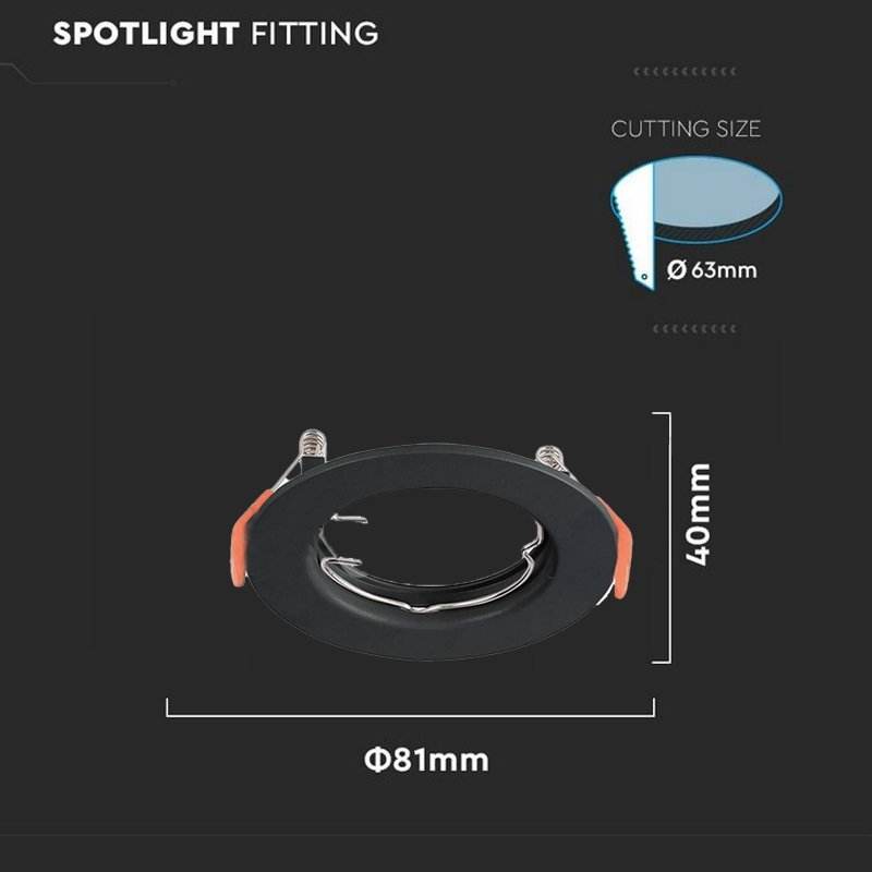 2 Pezzi Supporti Fissi Rotondi per Faretti LED GU10 MR16 con Molla, Attacco in Ceramica Nera, Tensione 250V, SKU 6641
