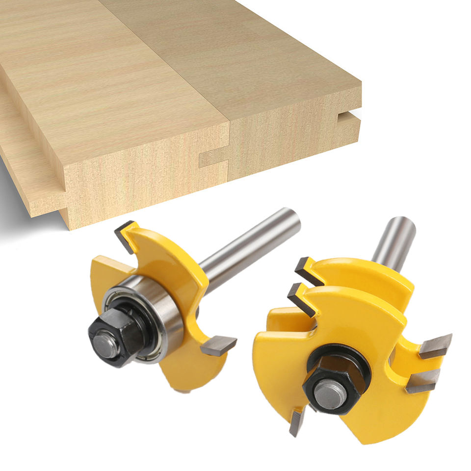 Set di 2 Frese per Scanalature a T e G, Frese per Porte in Legno, Utensili per Fresatura e Taglio con Punta in Carburo