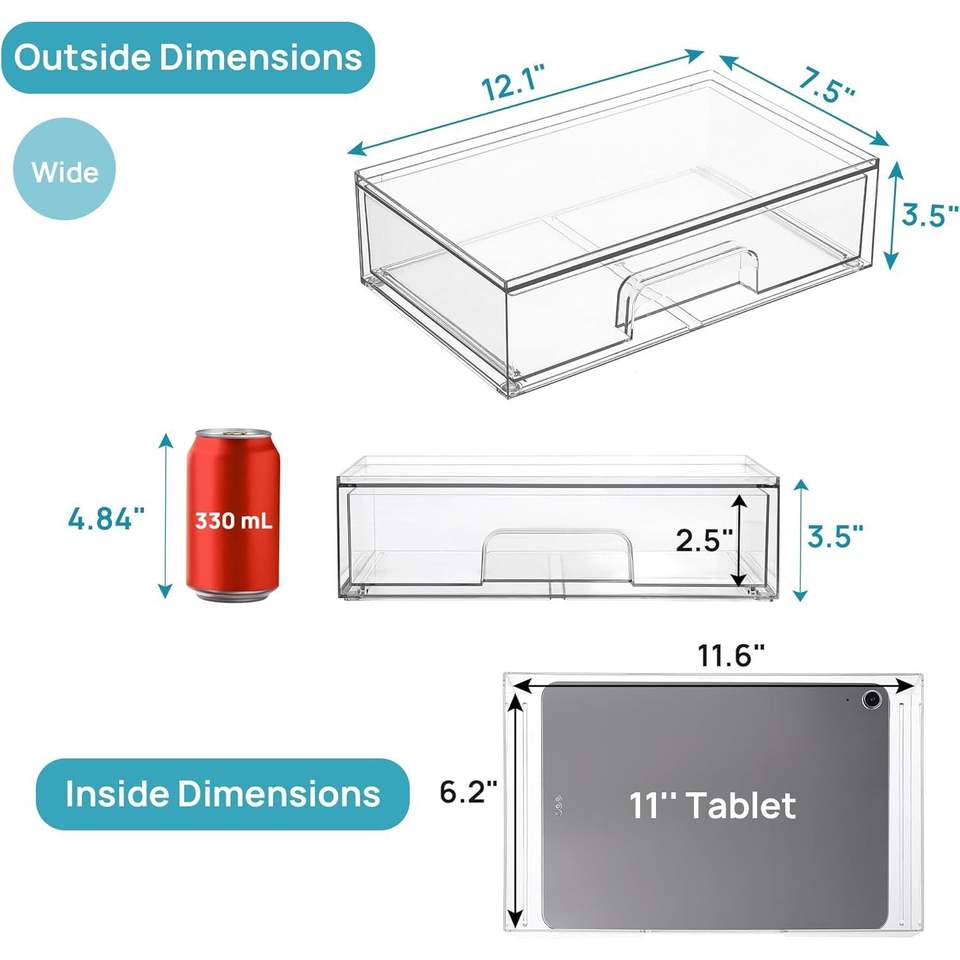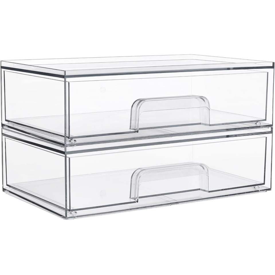 Set di 2 Cassetti Impilabili Trasparenti da 12,1 W, Contenitori Organizzatori in Plastica Acrilica per Trucchi, Cosmetici e Prodotti di Bellezza