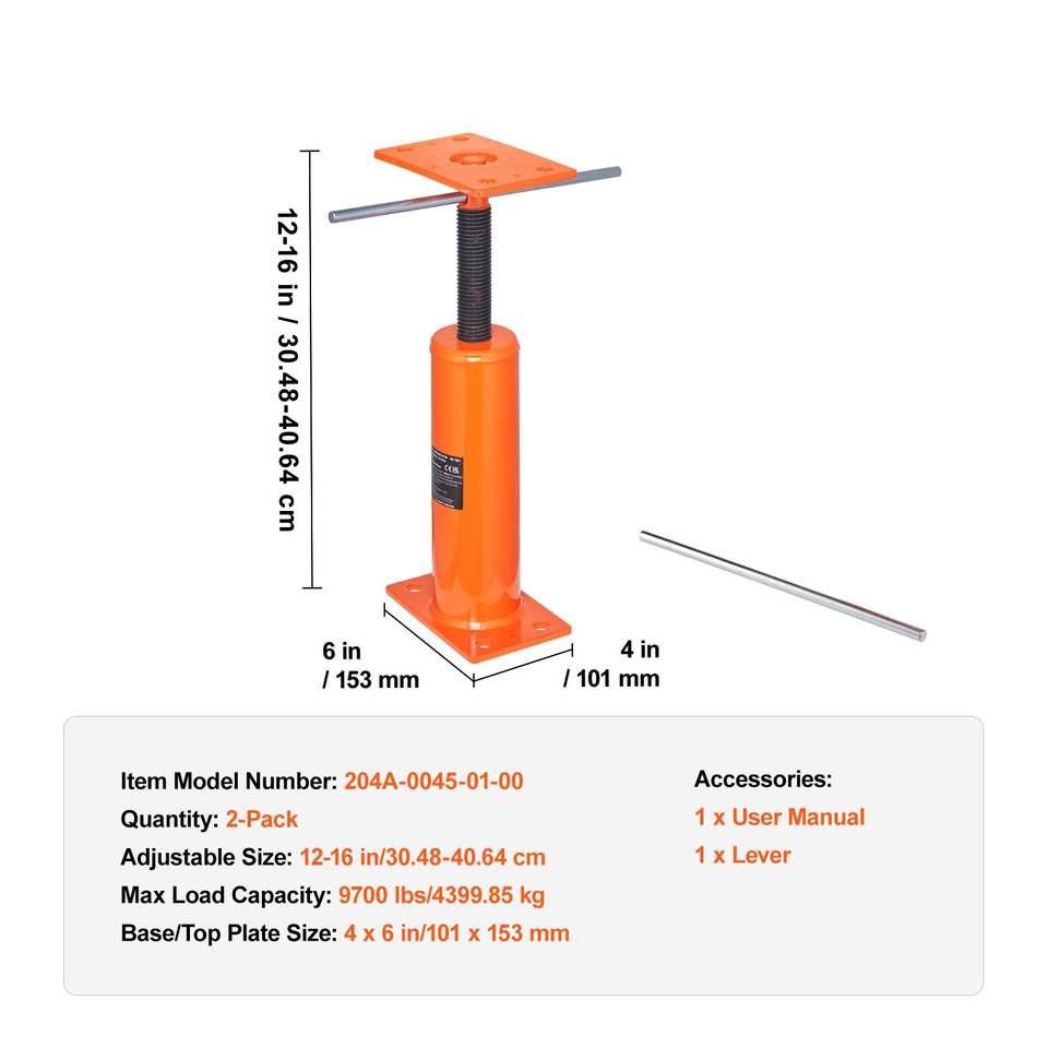 Set di 2 Martinetti Idraulici Regolabili da 12"-16" con Capacità di Carico Massima di 9700 Libbre, Supporto per Travi e Basamenti con Funzionalità Avanzate