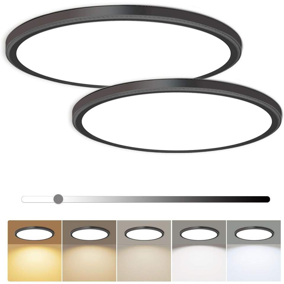 Confezione da 2 Plafoniere LED Dimmerabili da 12 Pollici, 28W 3200LM, 5 Temperature di Colore, Design Ultra Sottile, Illuminazione a Soffitto